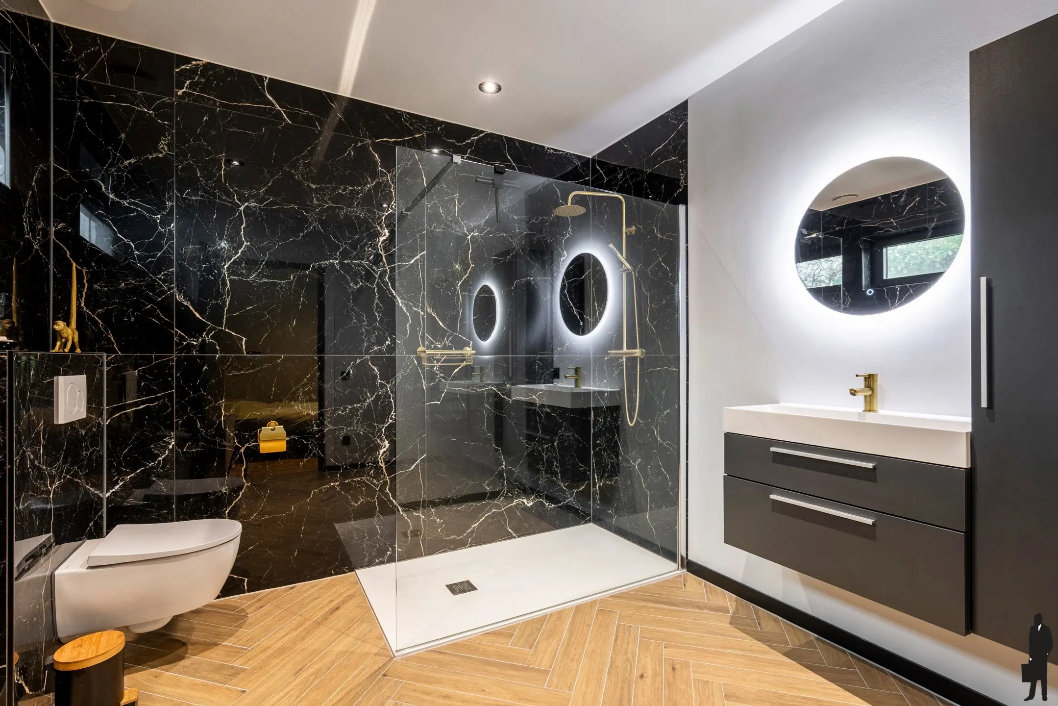 Vanuit de hal is er toegang tot twee ruime slaapkamers met elk een eigen badkamer voorzien van inloopdouche, wastafelmeubel en toilet.