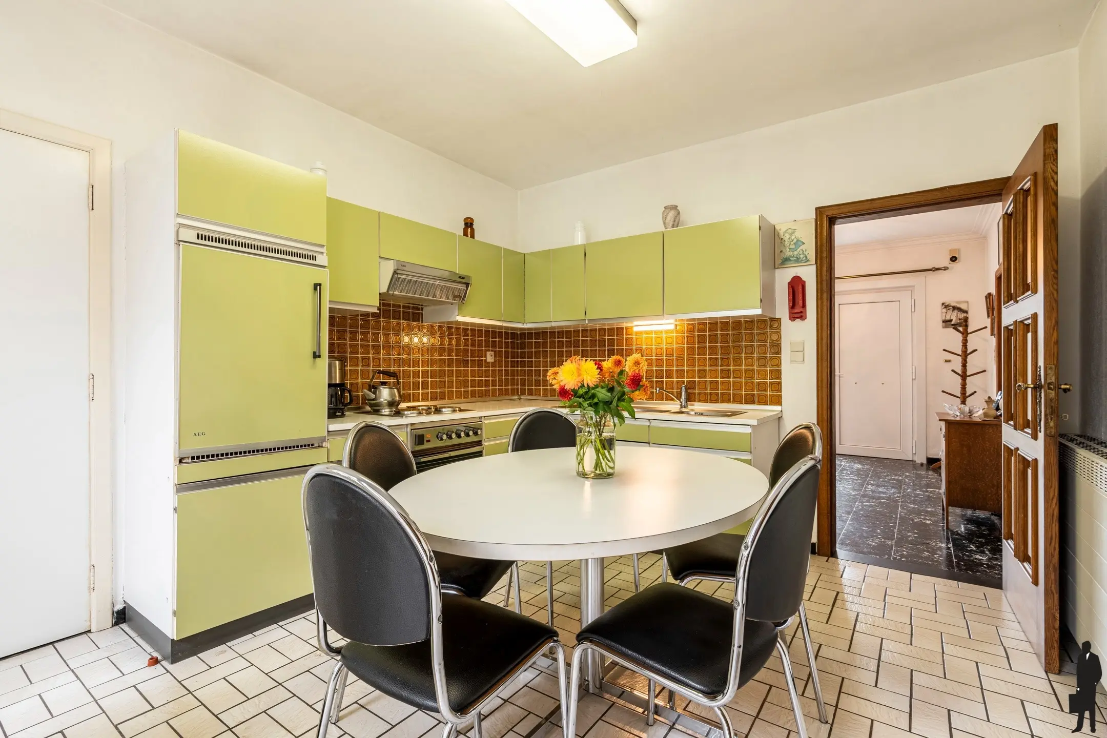 De keuken is geïnstalleerd met oudere toestellen. Via de keuken is de berging / technische ruimte en de bijkeuken bereikbaar.