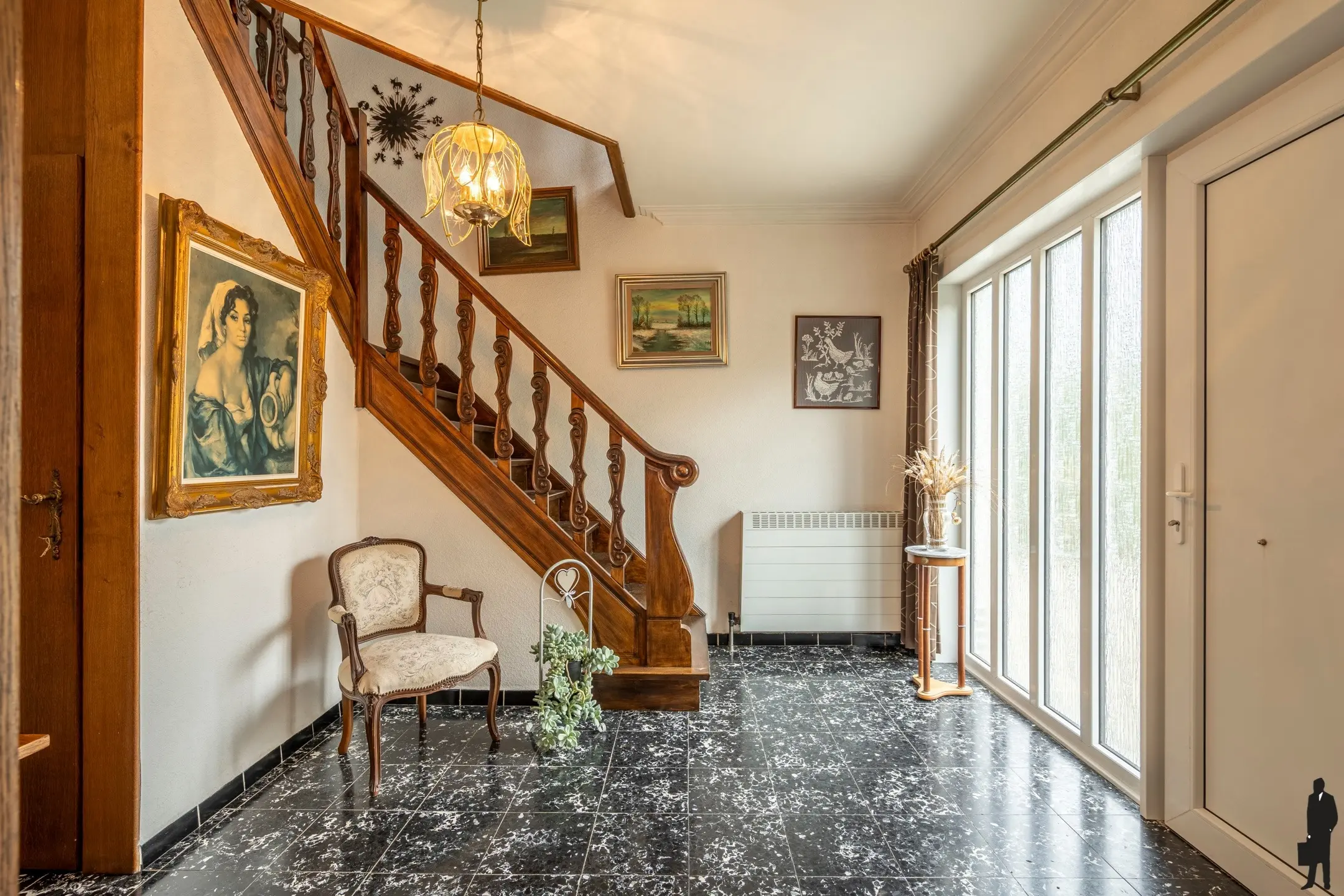 De vaste hardhouten trap in de inkomhal brengt u naar de nachthal op de eerste verdieping.