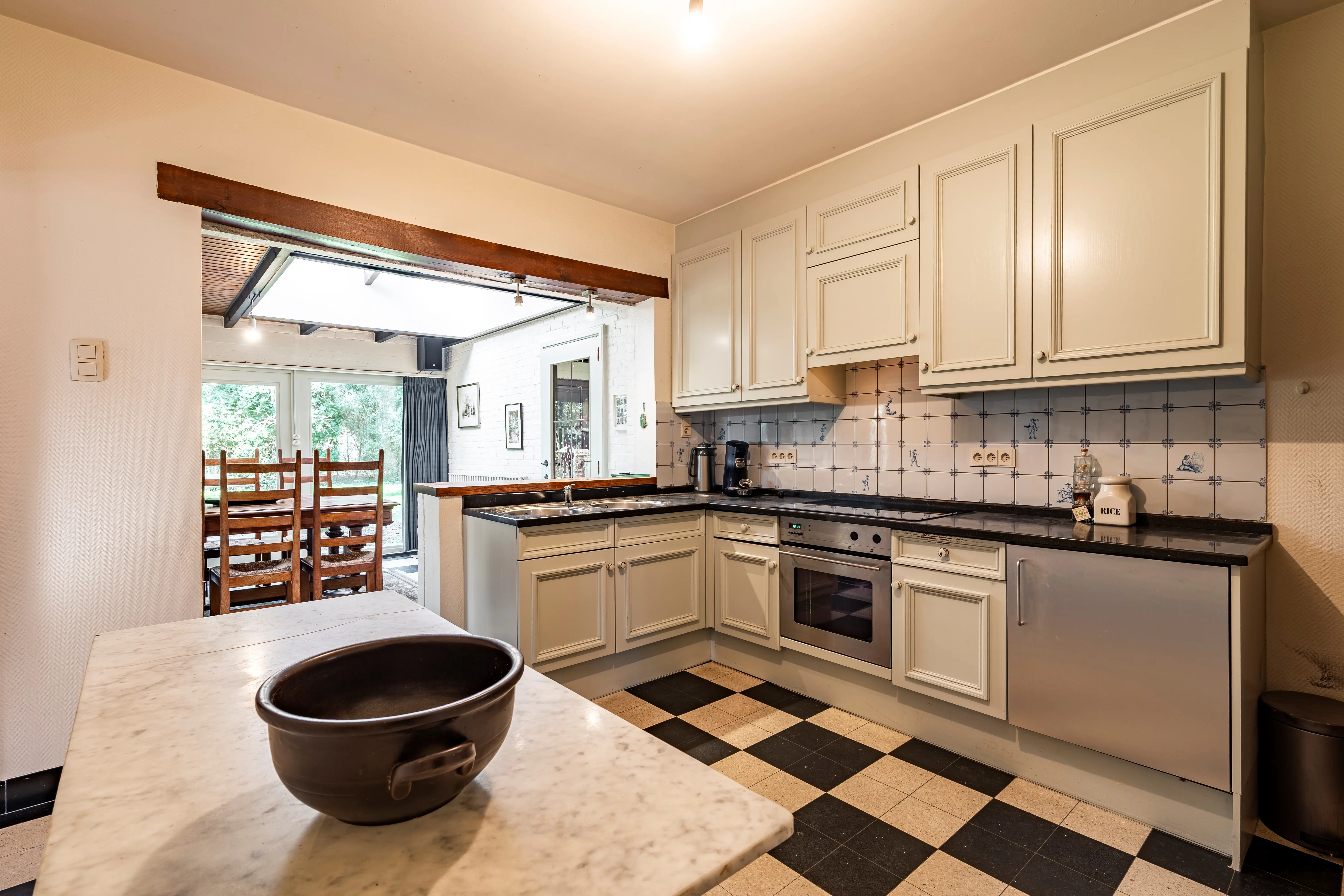 Vanuit de leefruimte heeft u toegang tot de keuken met open doorgang naar het ruime leefveranda deel (aanbouw).