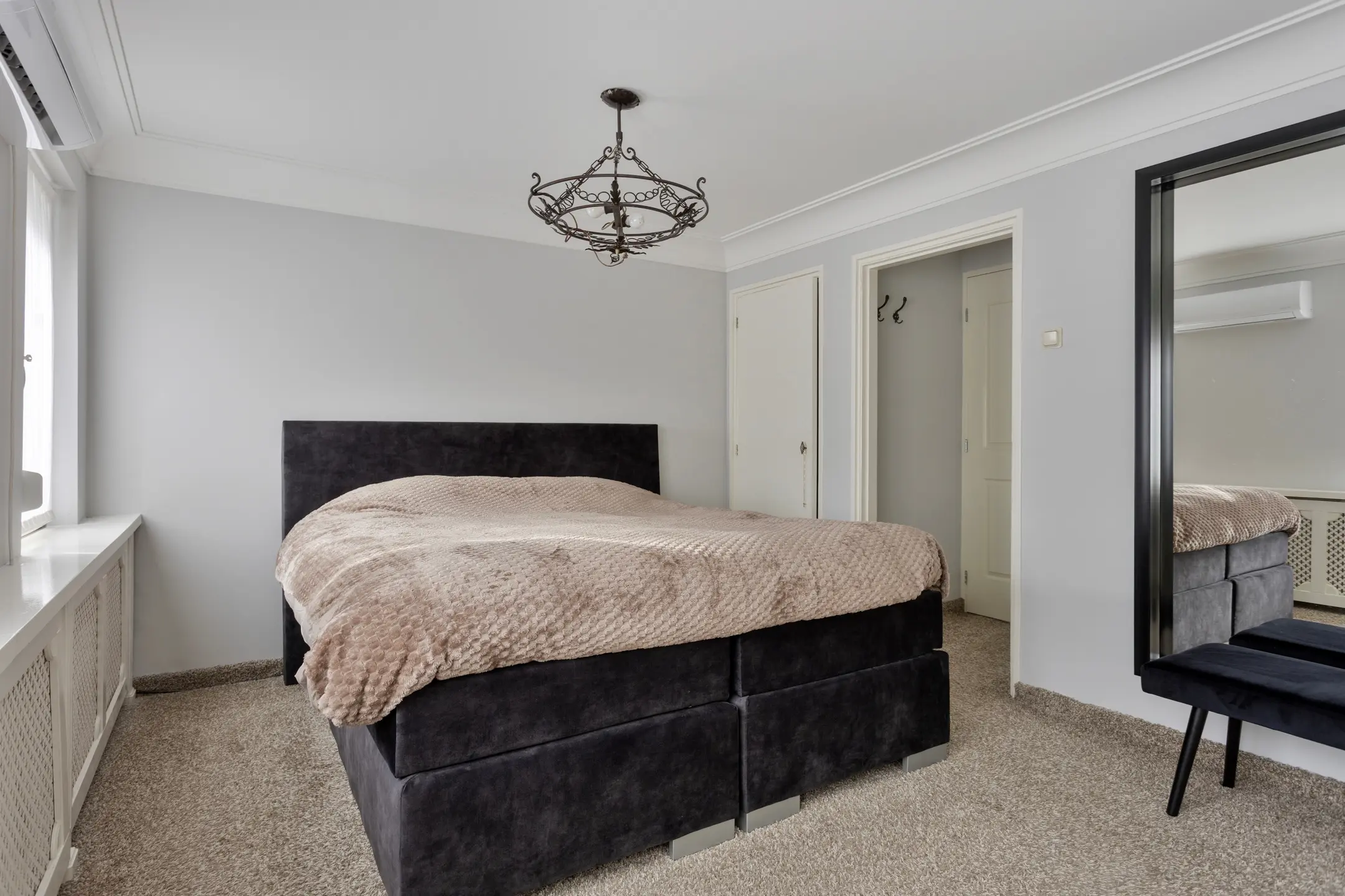 Hier vindt u twee ruime slaapkamers. De grote slaapkamer aan de voorzijde is bijzonder comfortabel en beschikt over een extra trappenkast én een royale inbouwkastenwand. Daarnaast is deze kamer voorzien van airconditioning, wat bijdraagt aan een prettige nachtrust. De tweede slaapkamer is eveneens ruim en netjes afgewerkt – ideaal als kinder-, werk- of logeerkamer.