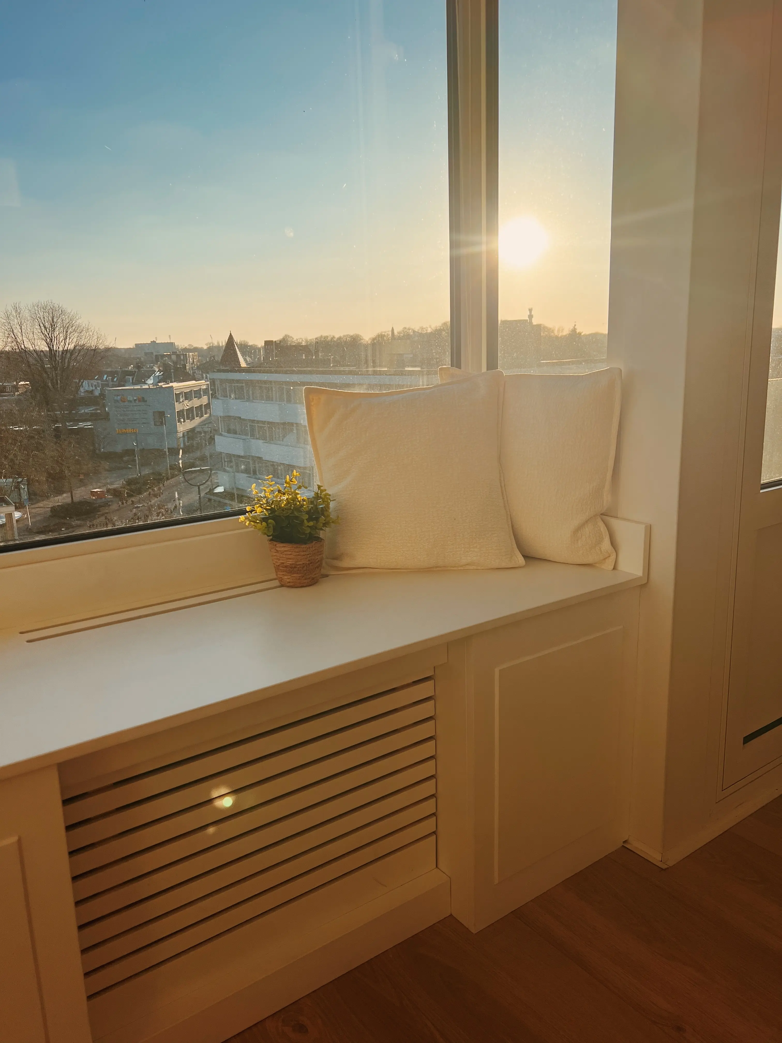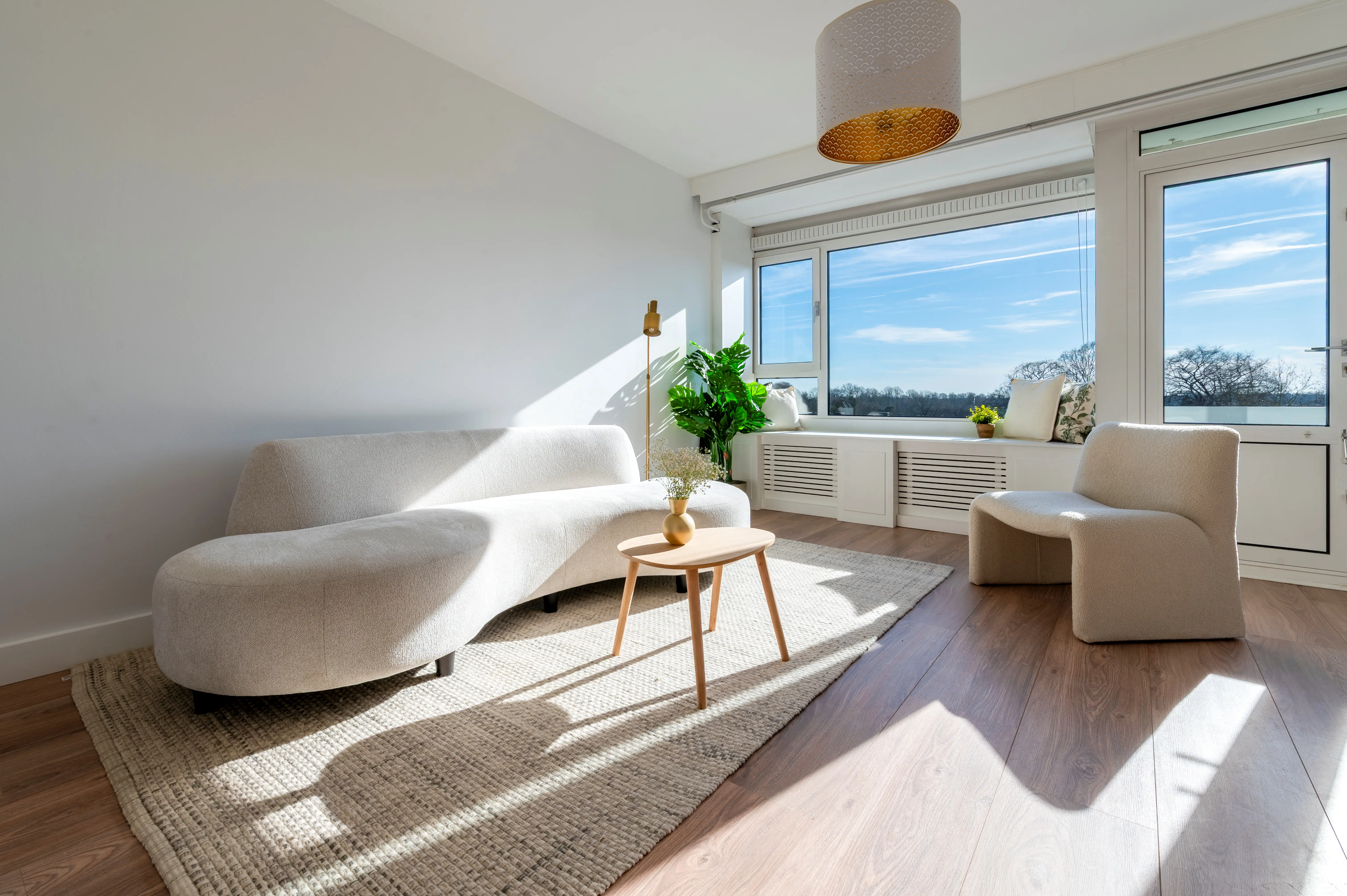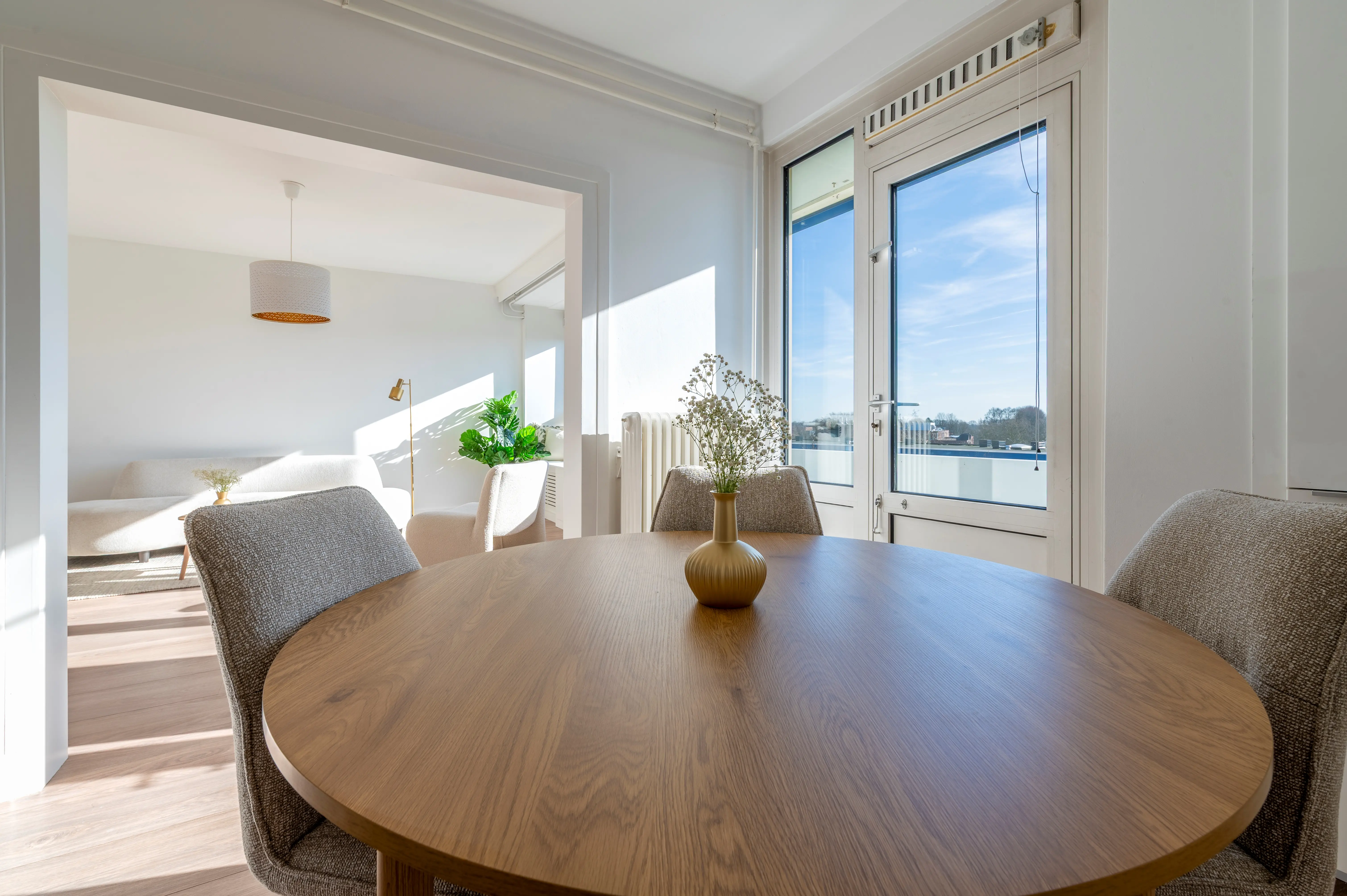 Dankzij de ligging op het zuidwesten baadt het appartement gedurende de dag in de zon, met prachtige lichtinval tot in de avonduren.