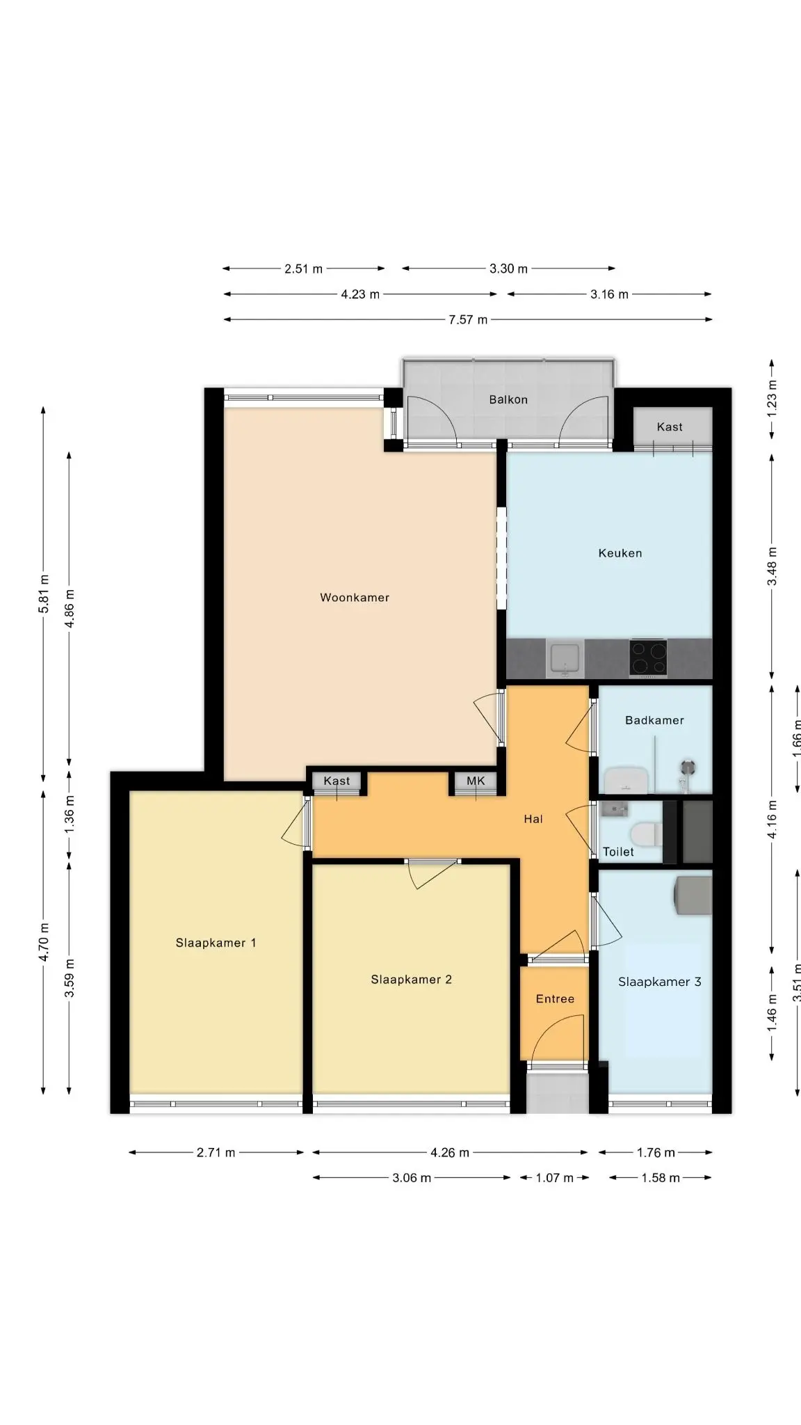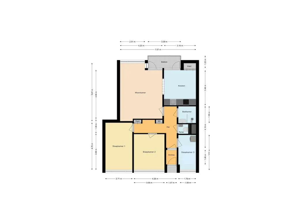 Aan de achterzijde van het appartement bevinden zich drie slaapkamers, die profiteren van een koele en aangename temperatuur.