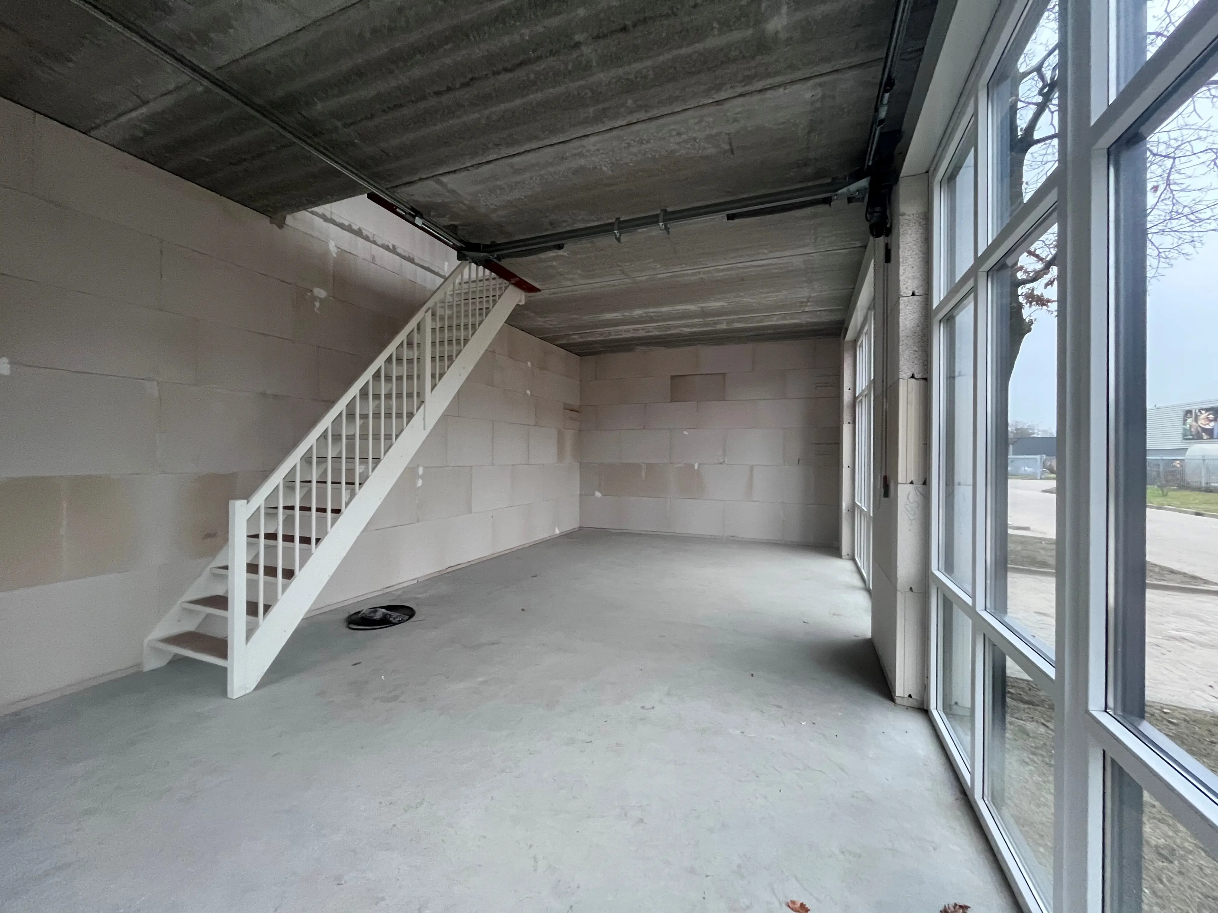 De unit wordt casco opgeleverd met een betonnen verdiepingsvloer over de gehele verdieping, kalkzandsteen tussenwanden, onderhoudsvrije kunststof deuren en raamkozijnen, roldeur met elektromotor, houten trap met traphekje en trapleuning, dak doorvoer voor een eventuele airco of zonnepanelen.