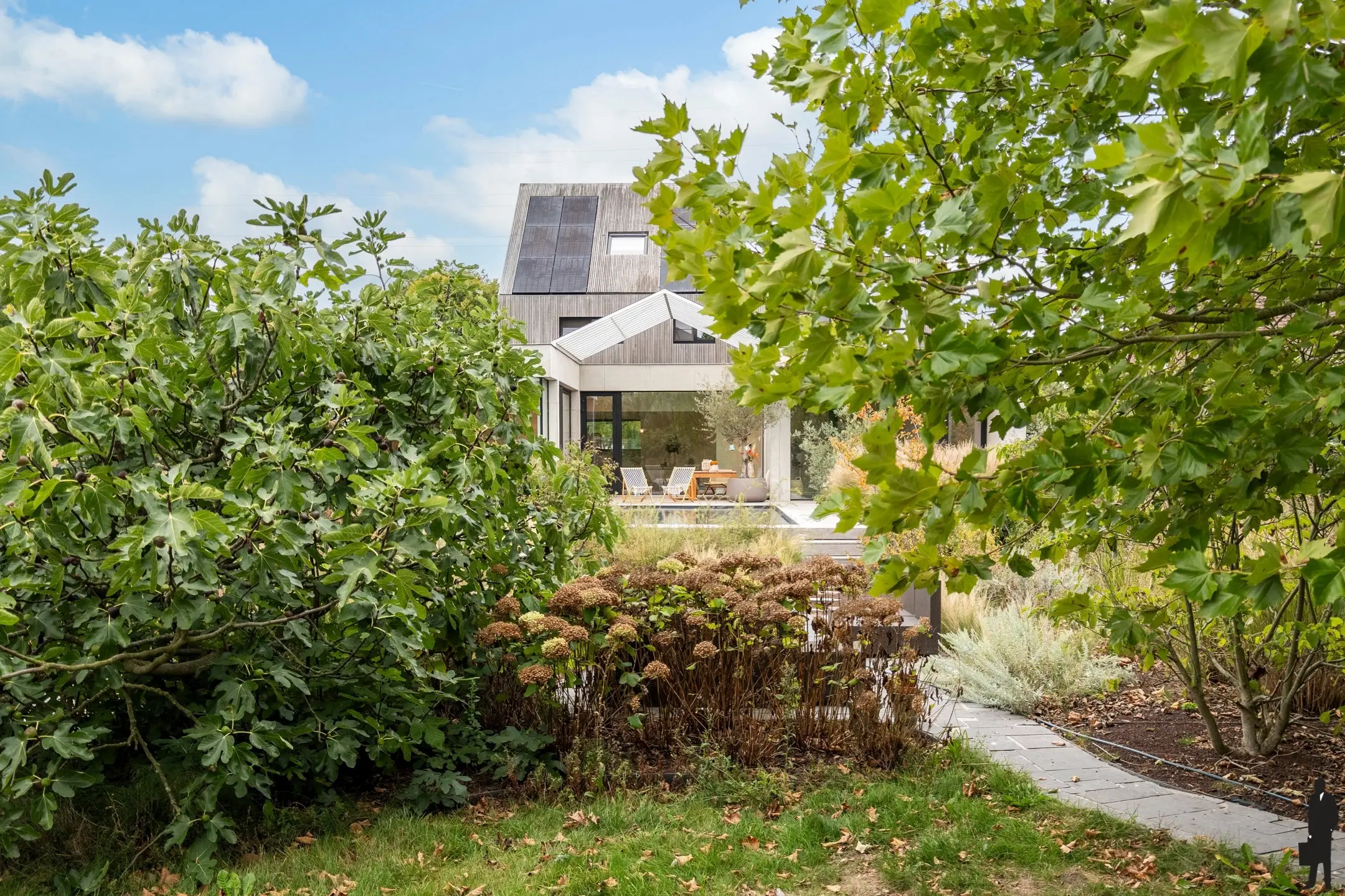 De uitgestrektheid van deze tuin en de verschillende private terrassen zorgen ervoor dat u in verschillende tuindelen in alle sereniteit van zon of schaduw kan genieten. De natuurtuin is verder volledig omheind en organisch aangelegd. 4