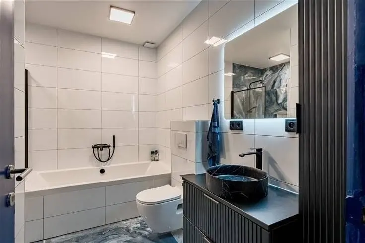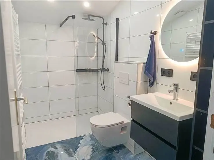 Zo werden de elektriciteit en waterleidingen vernieuwd, nieuwe vloeren geplaatst en twee stijlvolle badkamers en toiletten volledig vernieuwd.