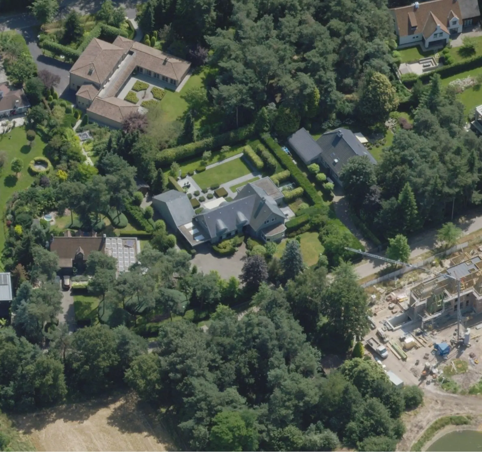 Perceel: volledig omheind met automatische toegangspoort, camera's en sproei-installatie