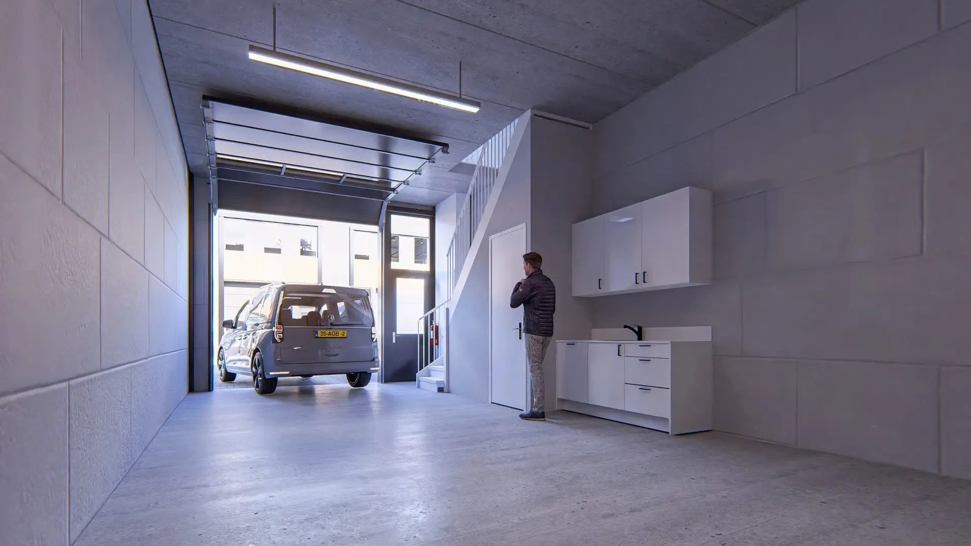 De unit wordt casco opgeleverd met een betonnen verdiepingsvloer over de gehele verdieping, kalkzandsteen tussenwanden, onderhoudsvrije kunststof deuren en raamkozijnen, roldeur met elektromotor, houten trap met traphekje en trapleuning, dak doorvoer voor een eventuele airco of zonnepanelen, brievenbus, groepenkast.