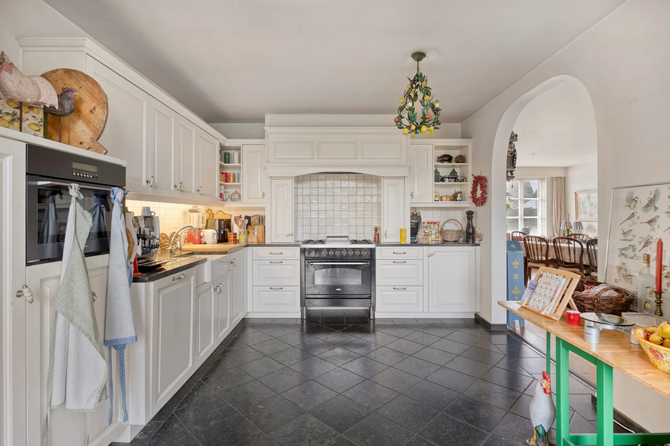 De keuken is uitgerust met een ATAG microgolf, een Boretti gasfornuis met oven (4 pitten en bakplaat), een heetwaterkraan, vaatwasser, koelkast en veel inbouwkasten.