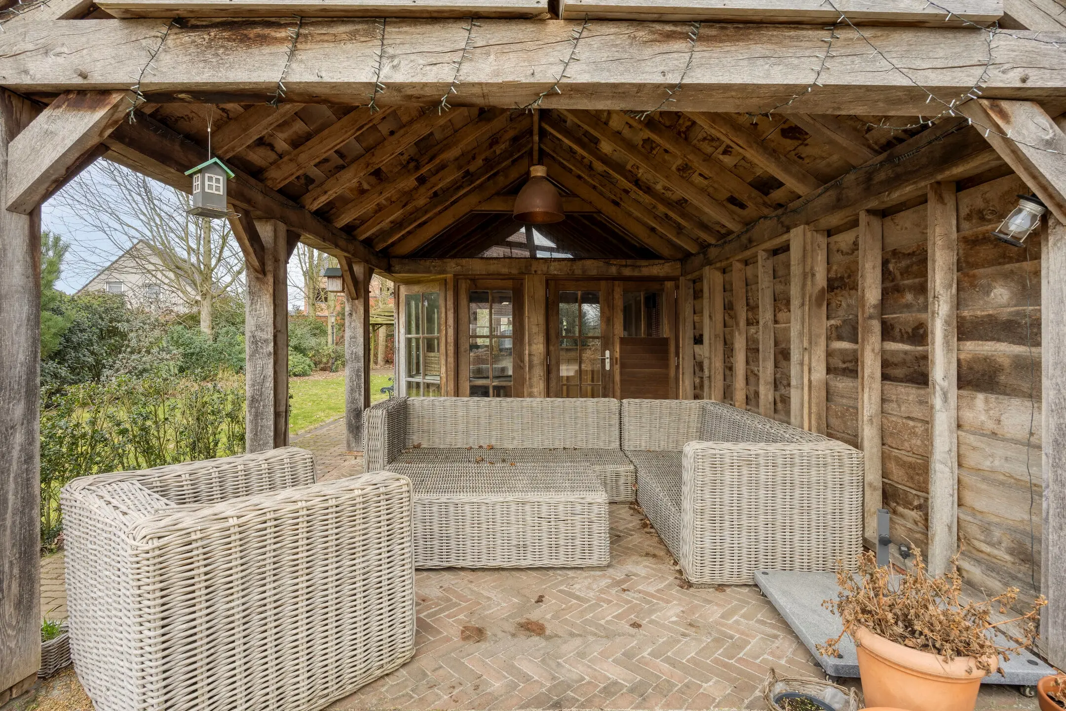 Om heerlijk te vertoeven is er een gezellig bijgebouw met overdekt terras en binnen een bar.