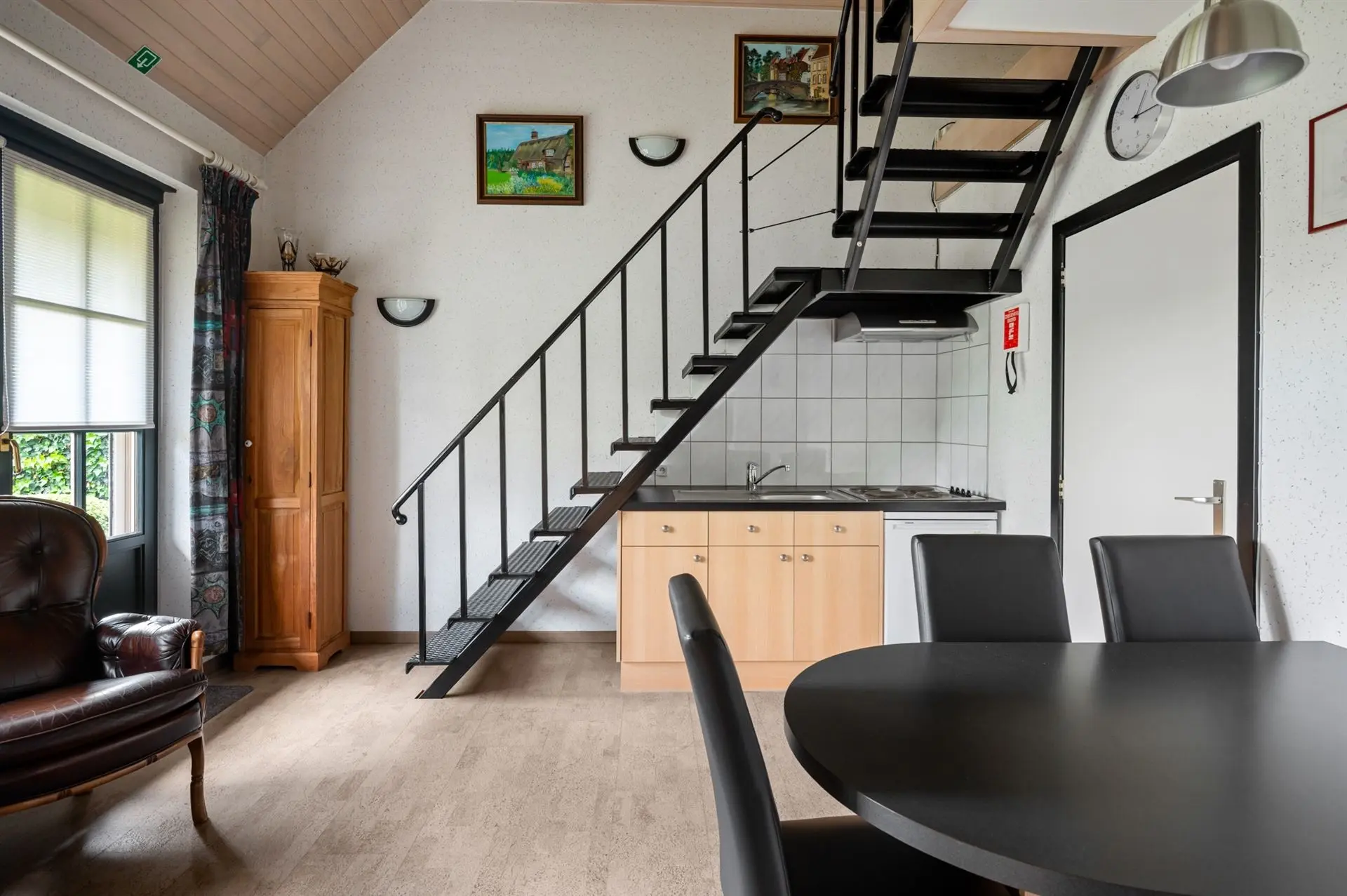 De ruime leefruimte (ca. 76 m²) bestaat uit een sfeervolle zithoek en een lichtrijke eethoek, ideaal voor gezellige familiemomenten.
