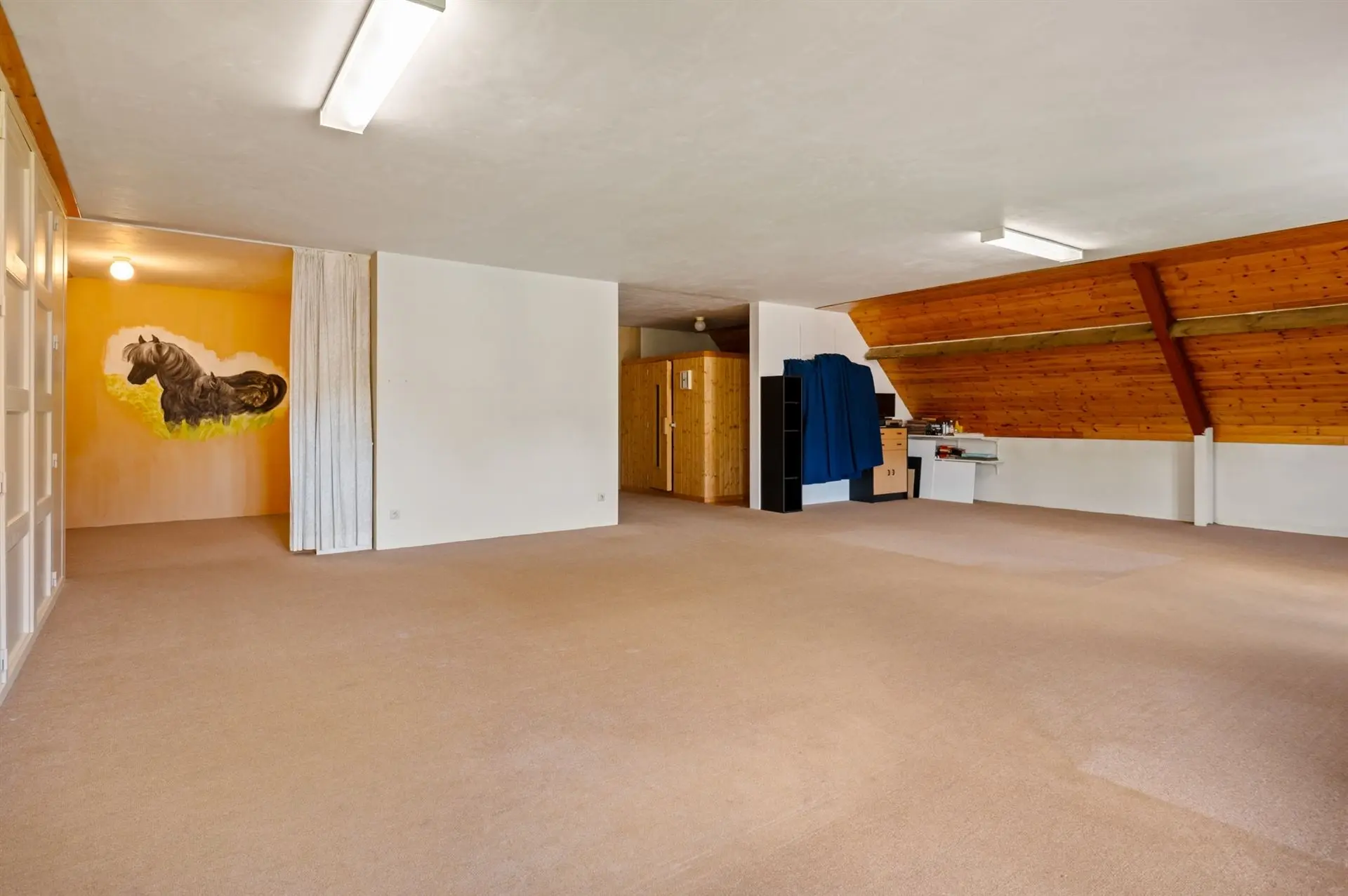 Een bijzondere troef is de aparte studio, voorzien van een kitchenette, eigen toilet en een slaapkamer die bereikbaar is via een trap.