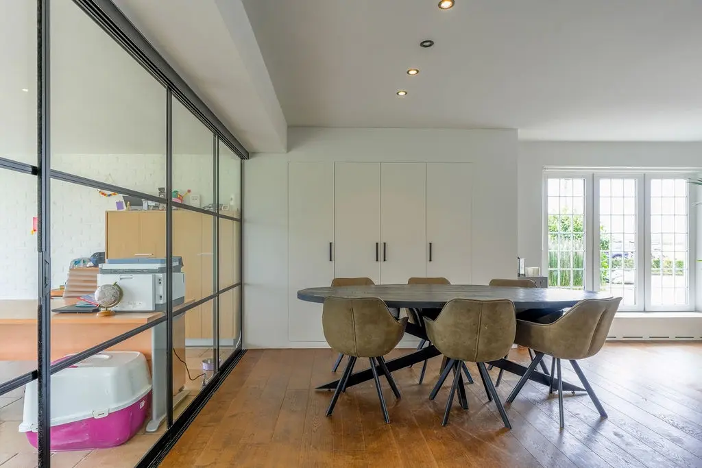 Meteen links bevindt zich een aparte kamer, ideaal in te richten als bureau, speelkamer of extra slaapkamer op het gelijkvloers.