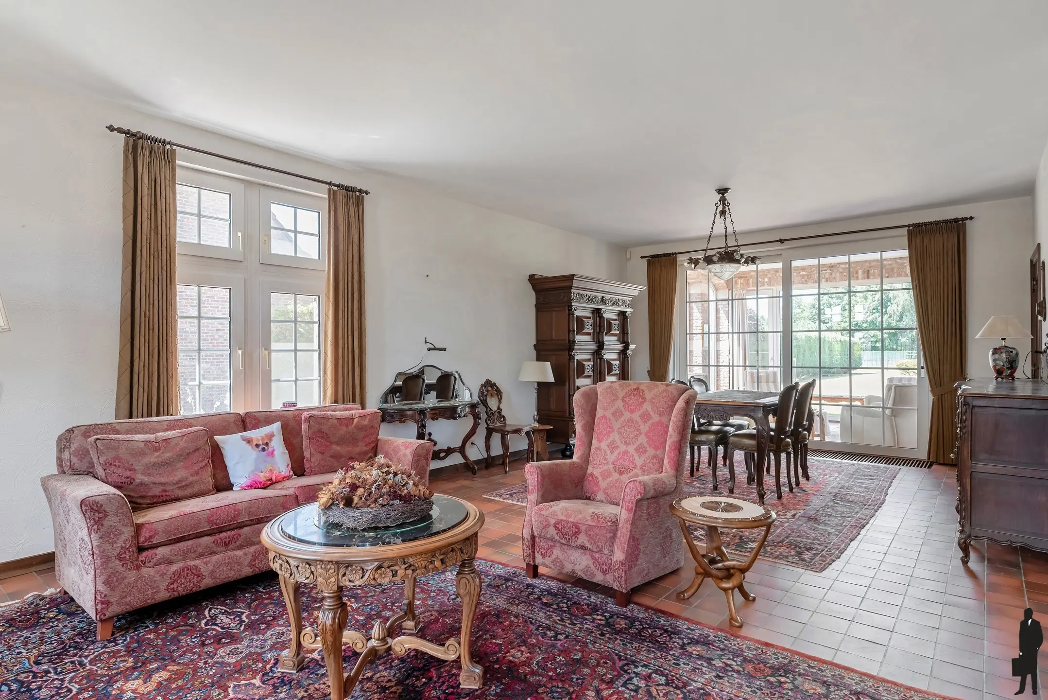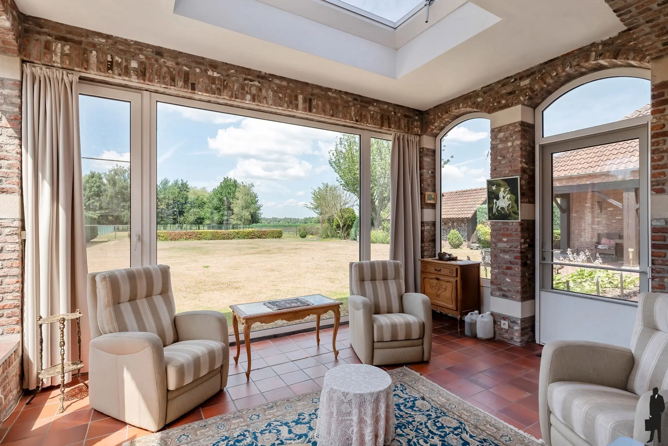 U betreedt de woning via de inkomhal met vestiaire en apart gastentoilet. Links van de inkomhal bevindt zich woonkamer die van veel natuurlijkdaglicht geniet door de raampartijen. Vanuit de aangrenzende veranda/tuinkamer heeft u een mooi zicht over de weilanden.