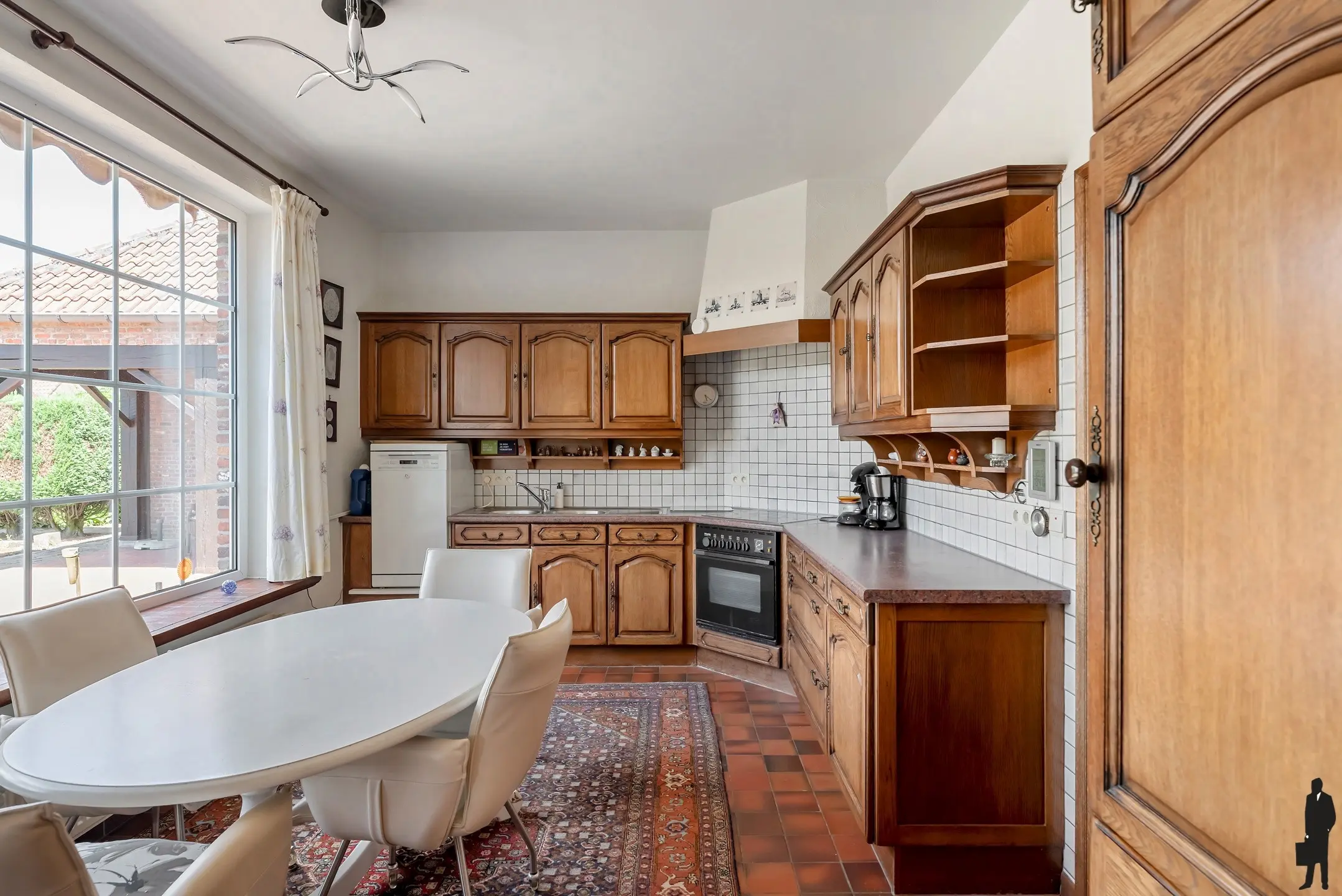 De keuken heeft fraai zicht over de tuin en is voorzien van (gedateerde) keukeninrichting met een aanpalende berging.