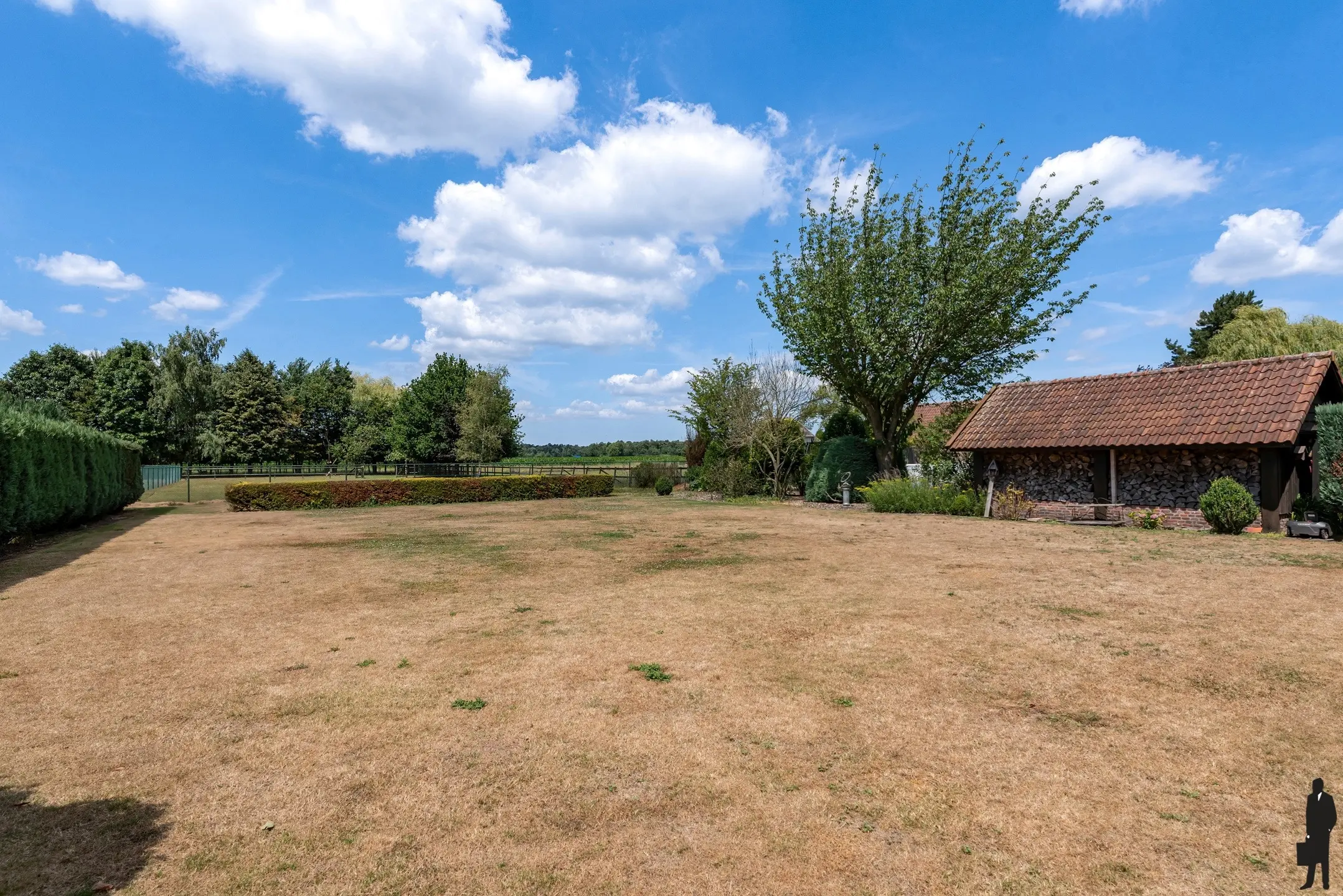 aangename tuin met geweldig uitzicht over achterliggende weilanden en een overdekt terras.