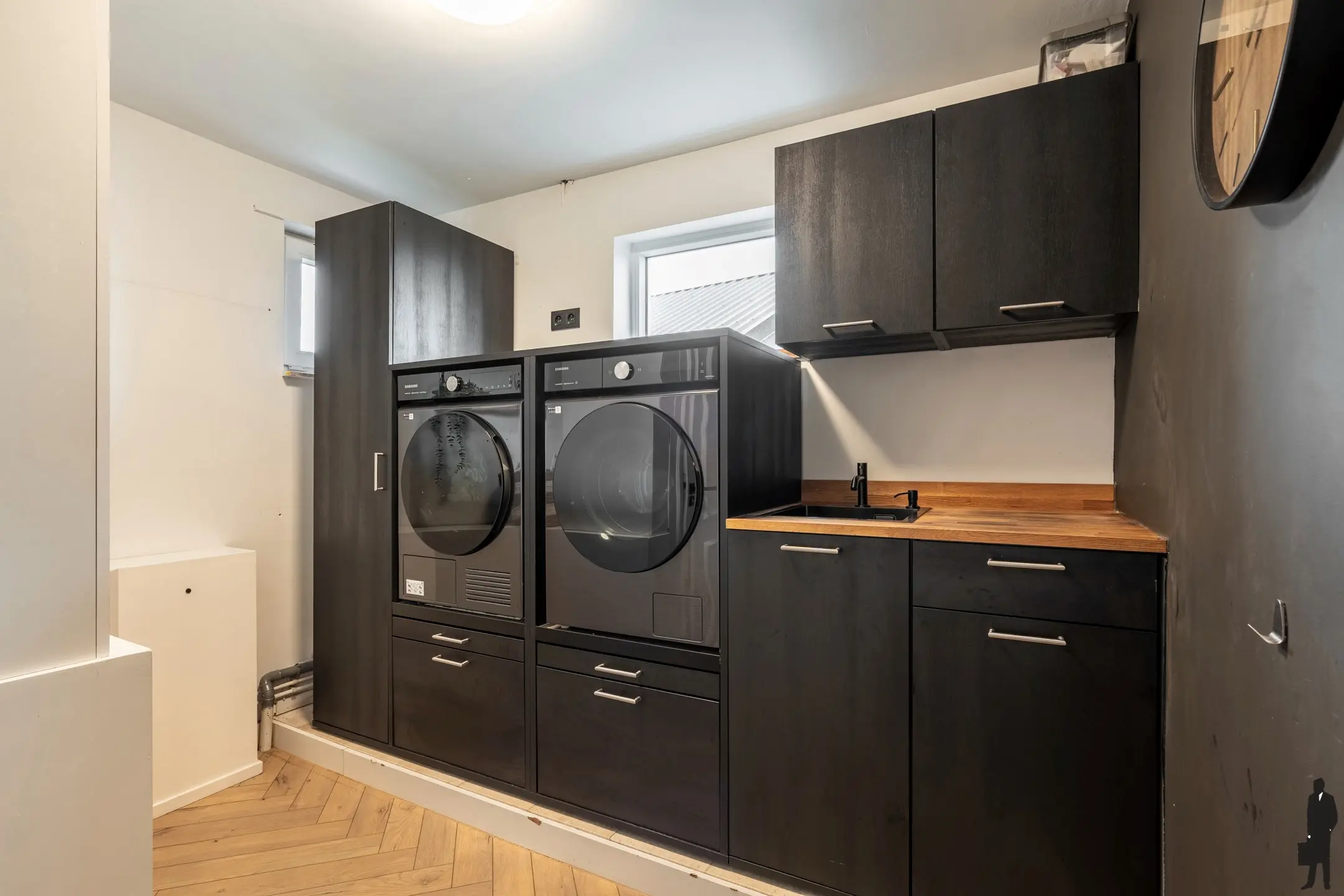 Naast de keuken bevindt zich een praktische wasplaats.