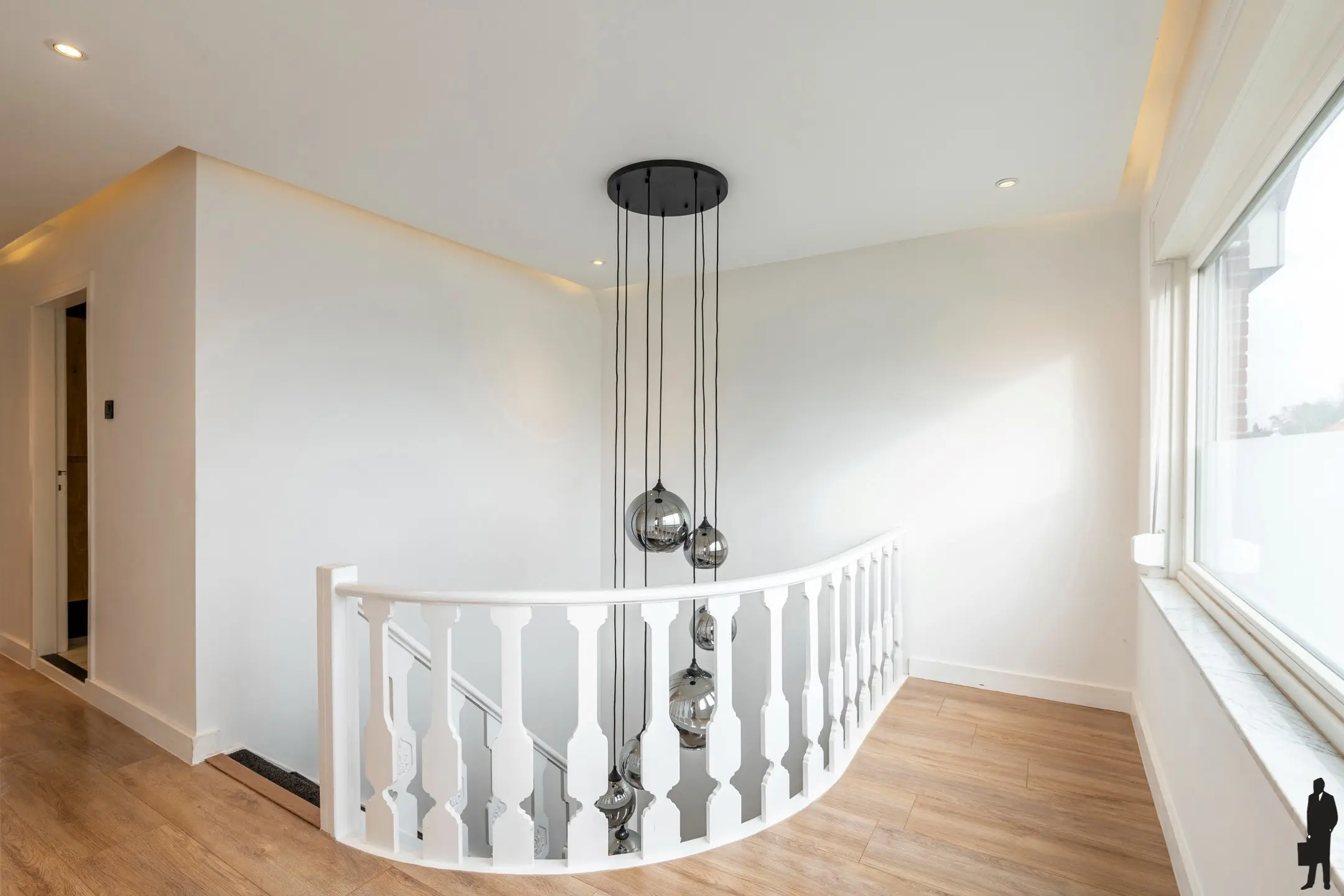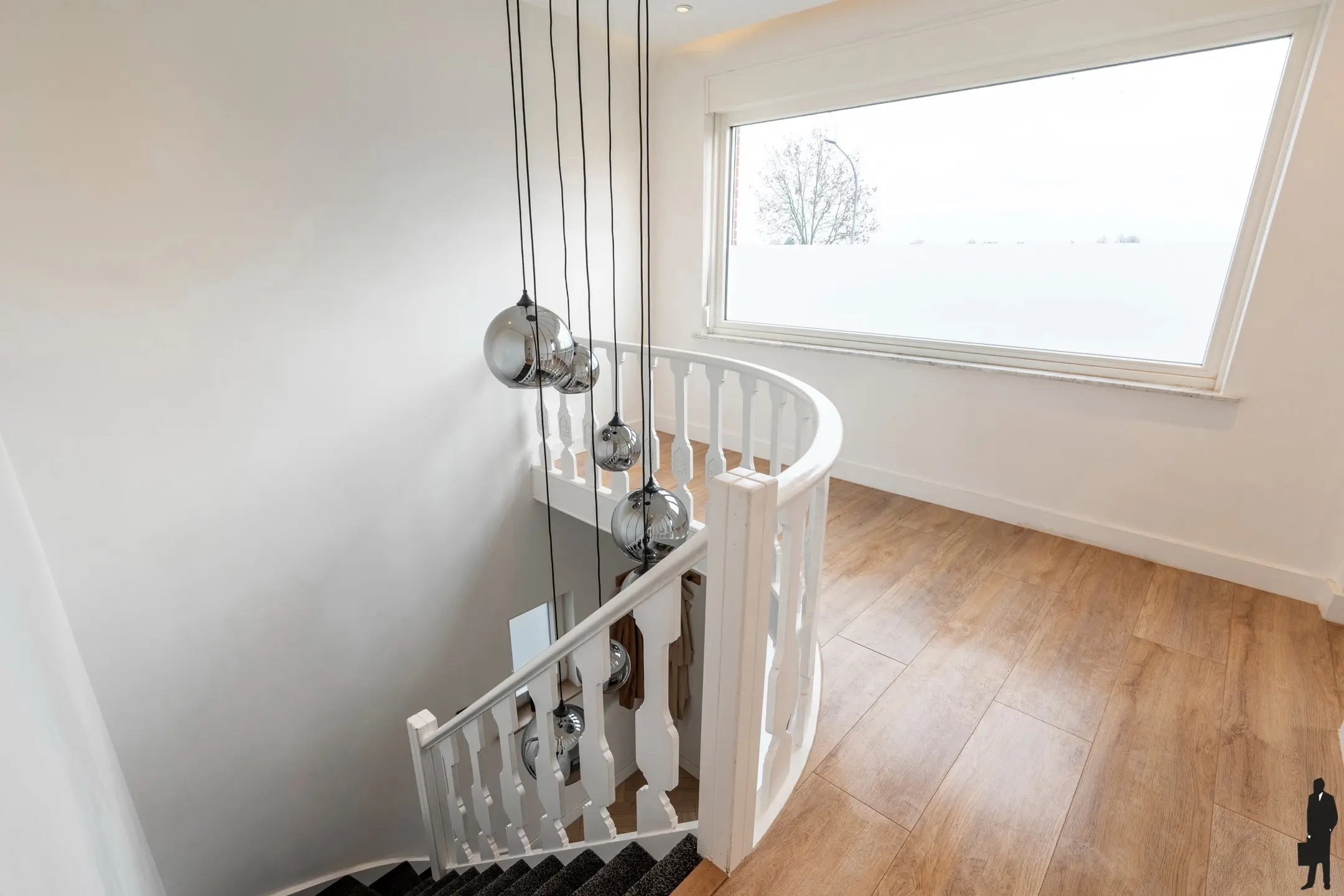 Eerste verdieping: Via de trap in de inkomhal bereikt u de eerste verdieping van de woning.