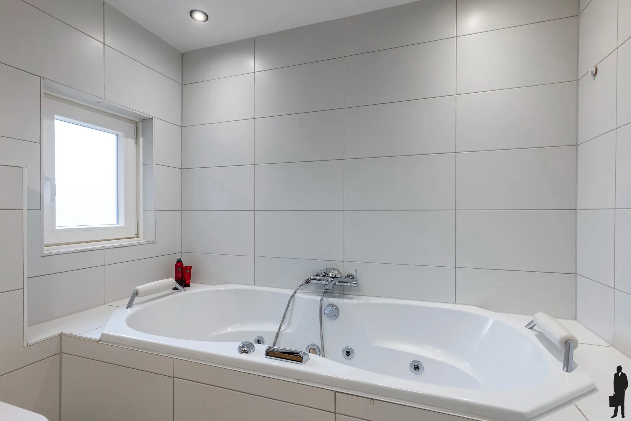Daarnaast is er op de eerste verdieping een 2de badkamer met whirlpool bad, wastafel en toilet.
