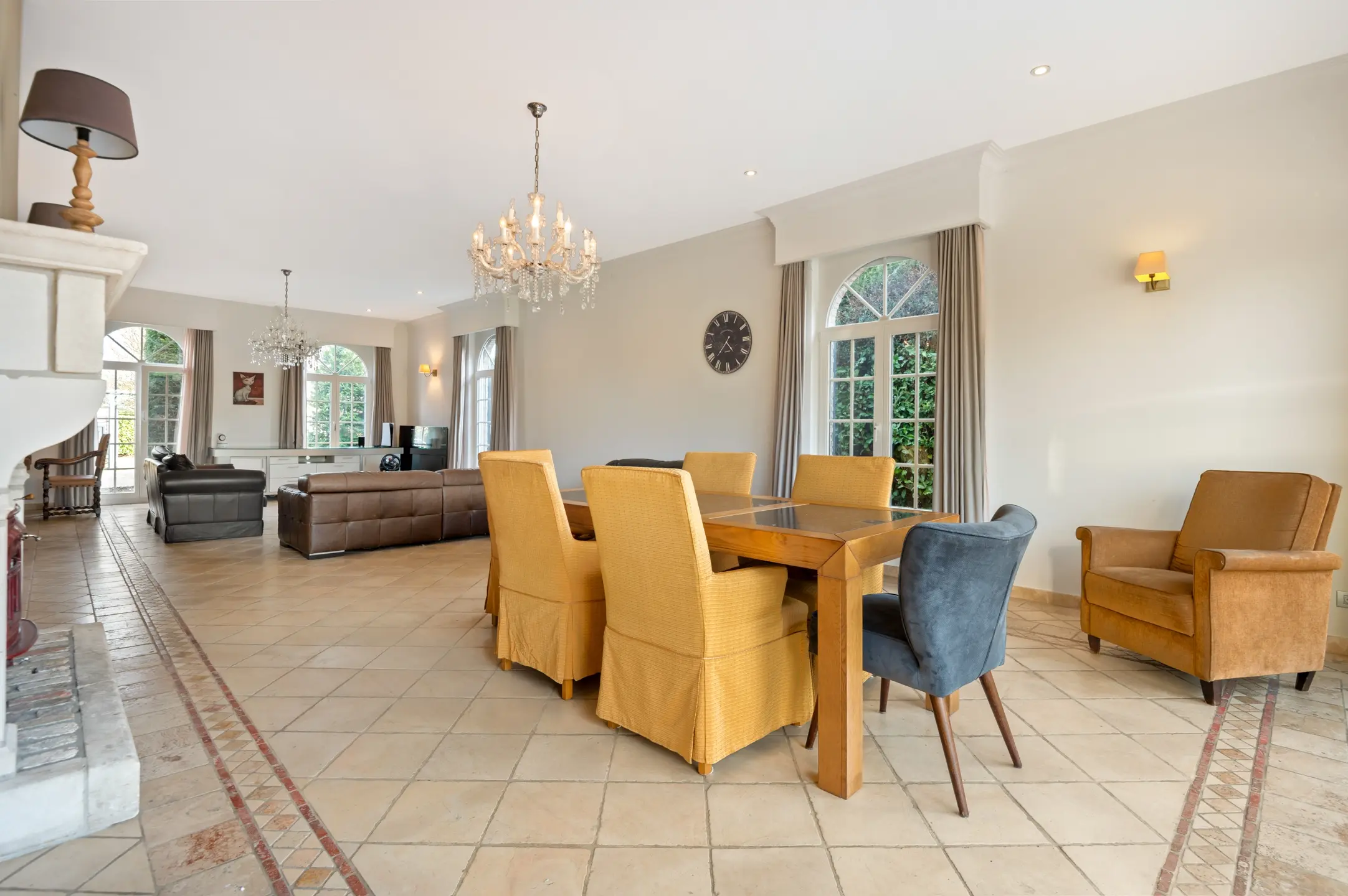 De woning beschikt over een uitgestrekte, prachtig aangelegde tuin die ultiem buitencomfort biedt. Bij het betreden van de tuin treffen we eerst een overdekt terras met een volledig uitgeruste buitenkeuken, perfect voor sfeervolle avonden in de open lucht. Daarnaast is er een ruim zonneterras, dat dankzij een elektrische zonneluifel naar wens schaduw creëert. De tuin is volledig omheind, wat zorgt voor privacy en geborgenheid. Er zijn 2 elektrische poorten met video intercom.