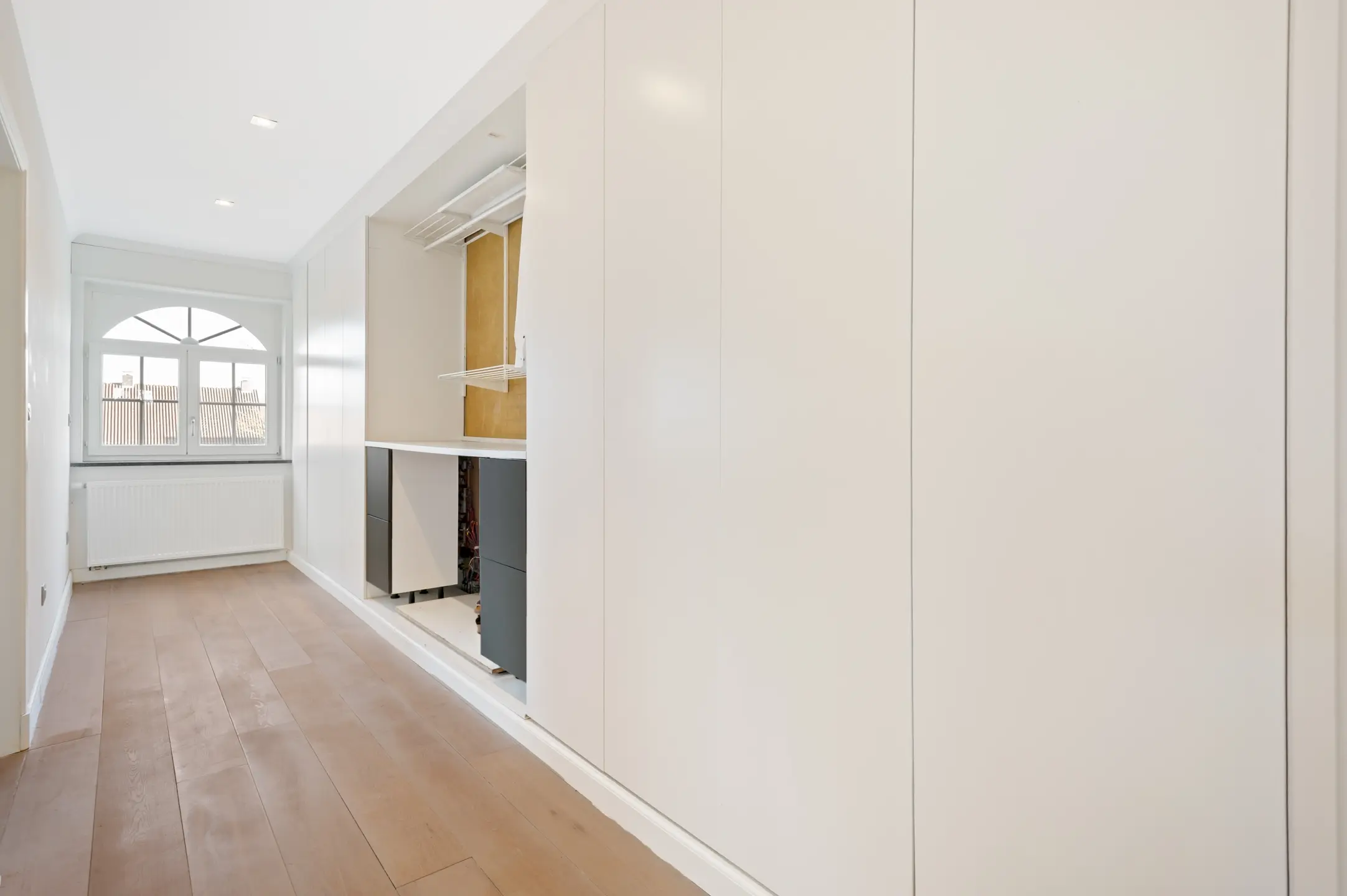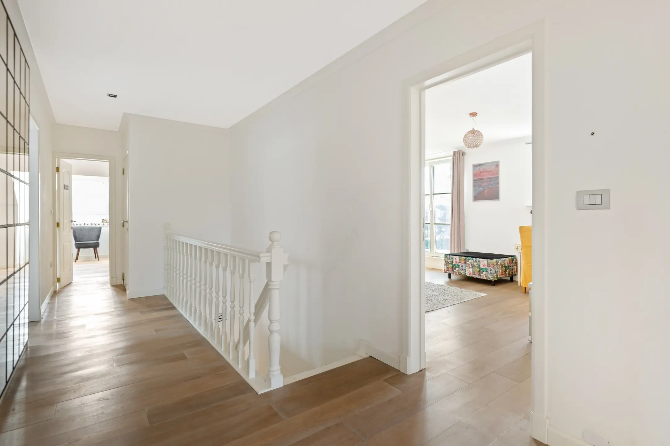 Via de nachthal, verfijnd afgewerkt met ingebouwde kasten en een tweede wasplaats met een handige waskoker vanuit de badkamer, bereiken we vijf riante slaapkamers en een royale badkamer met apart toilet.