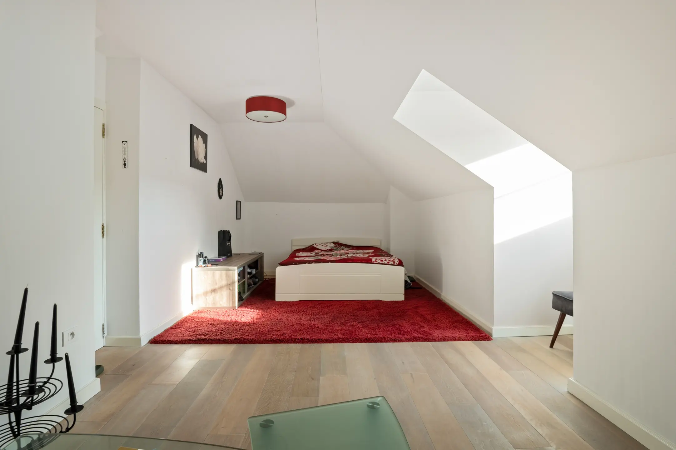 Via een vaste trap bereiken we de bovenste verdieping, waar zich nog twee ruime slaapkamers bevinden, evenals een praktische extra berging. Deze ruimtes genieten van een optimaal ruimtegebruik en natuurlijke lichtinval, ideaal als extra slaapkamers, hobbyruimte of thuiskantoor.