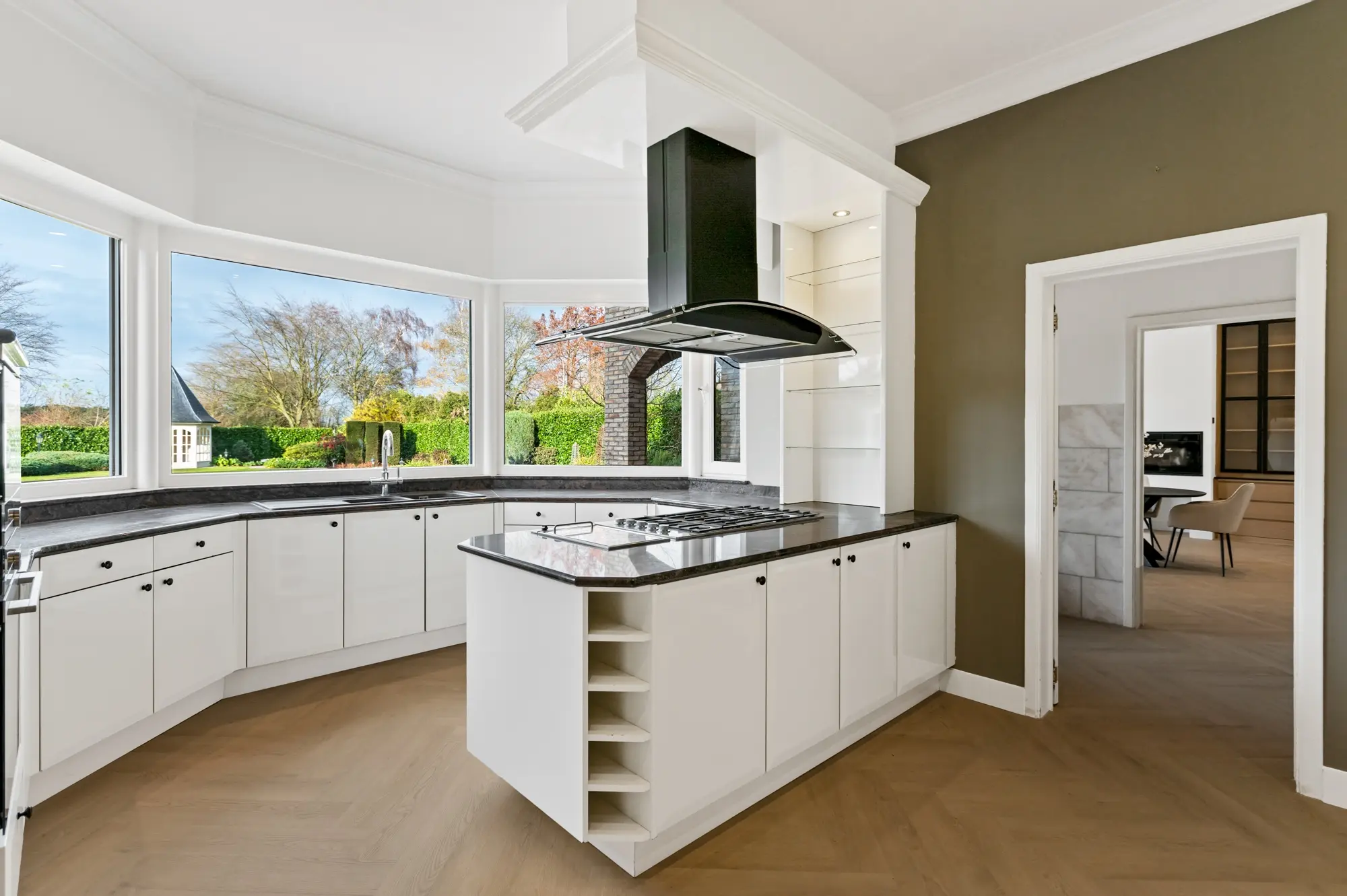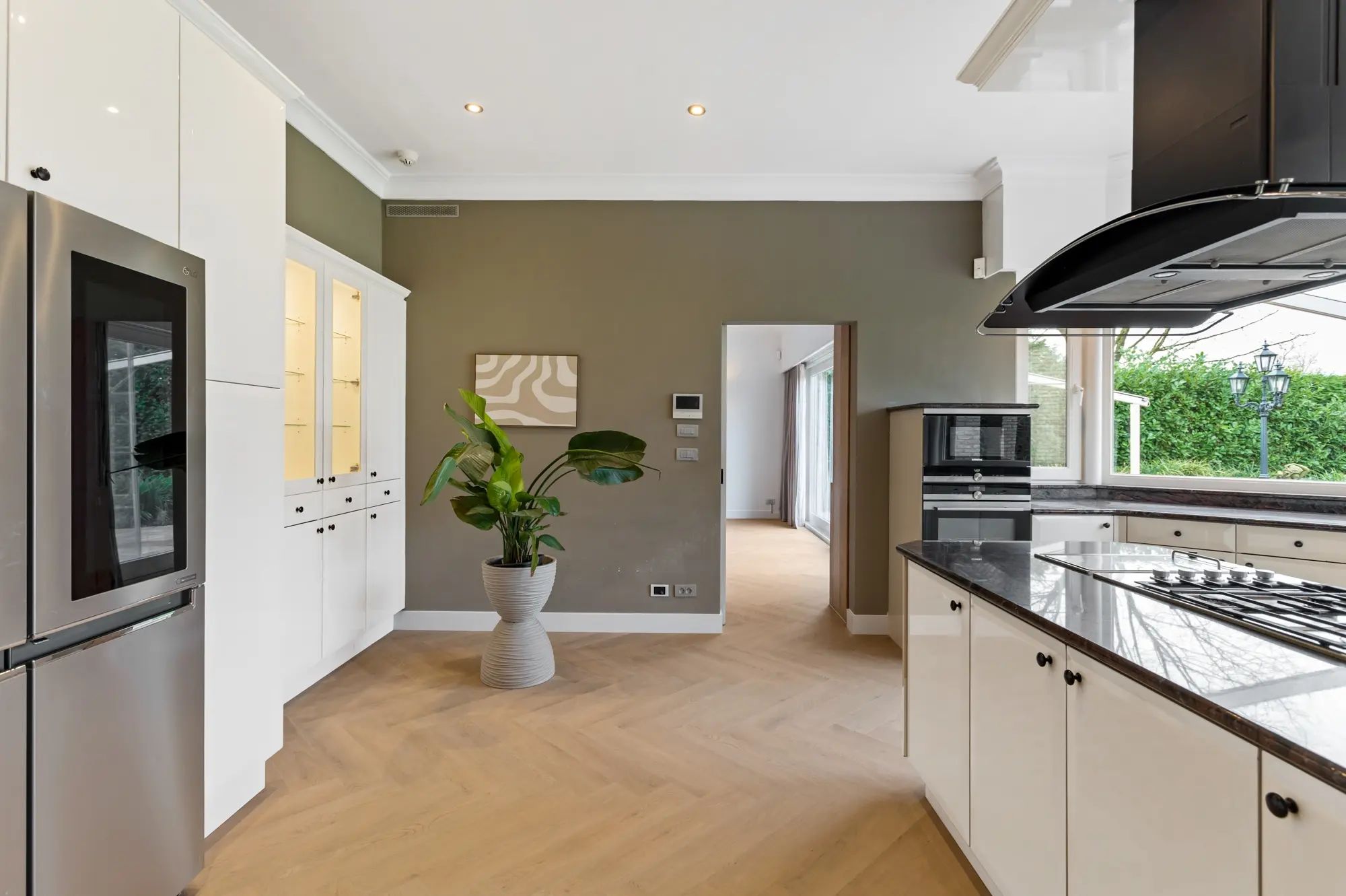 Aansluitend bevindt zich de ruime keuken met aangenaam tuinzicht.