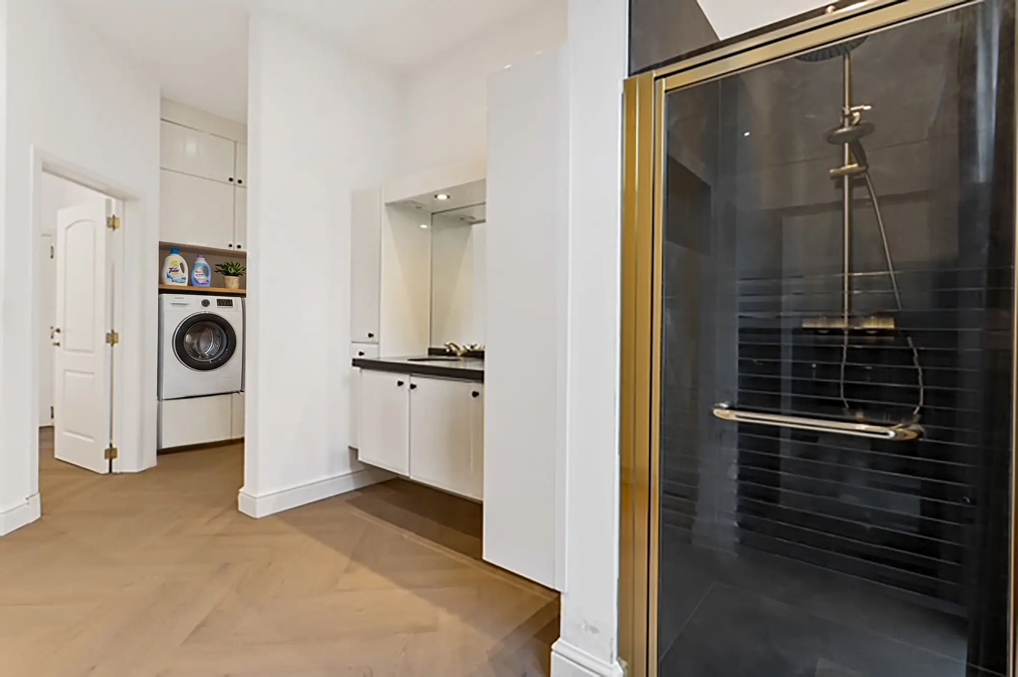 Bovendien zijn de aansluitingen voor een sauna en stoomcabine reeds voorzien, waardoor deze ruimte een exclusieve wellnessbeleving biedt.