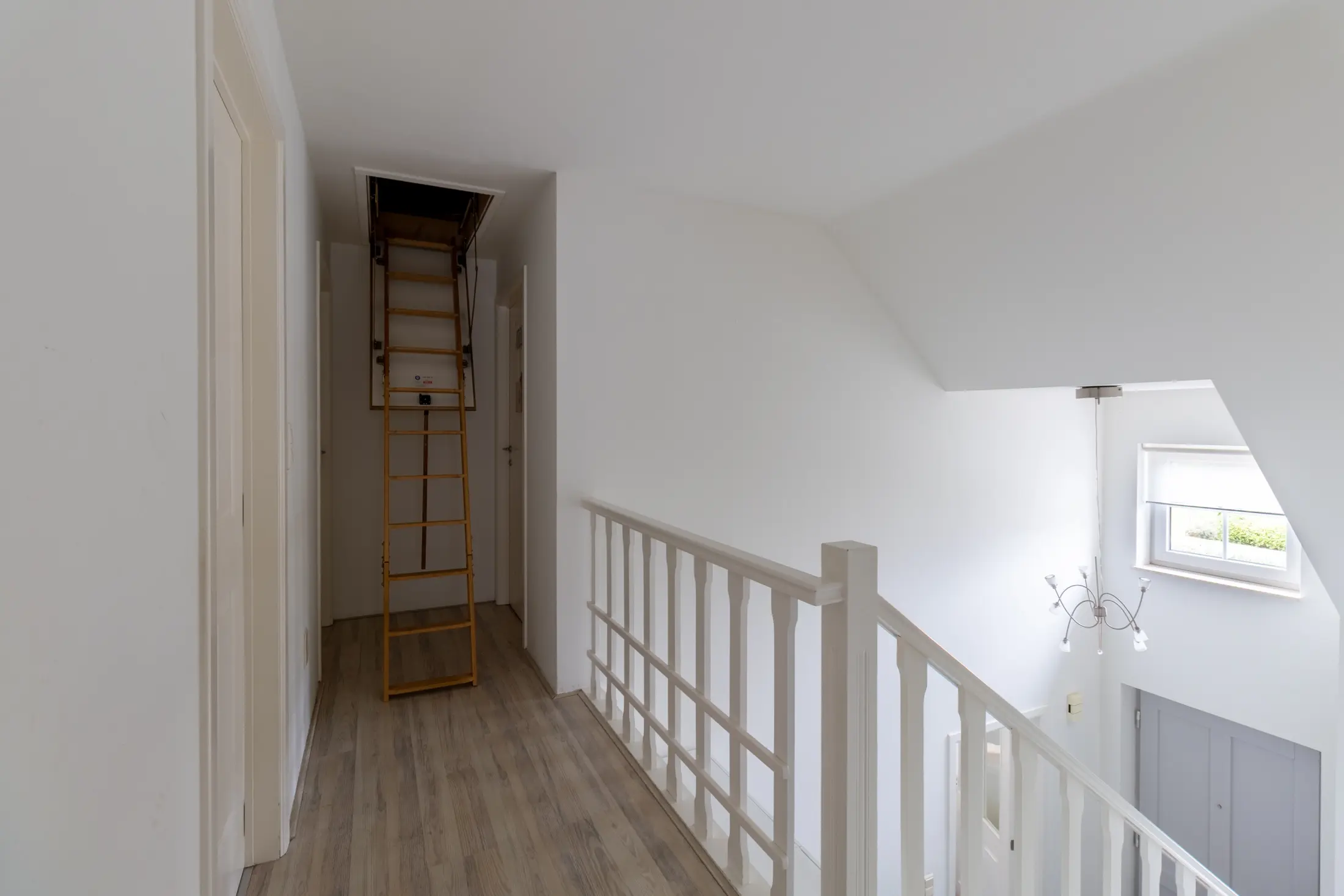De zolder, bereikbaar via een valtrap, zorgt voor extra bergruimte.