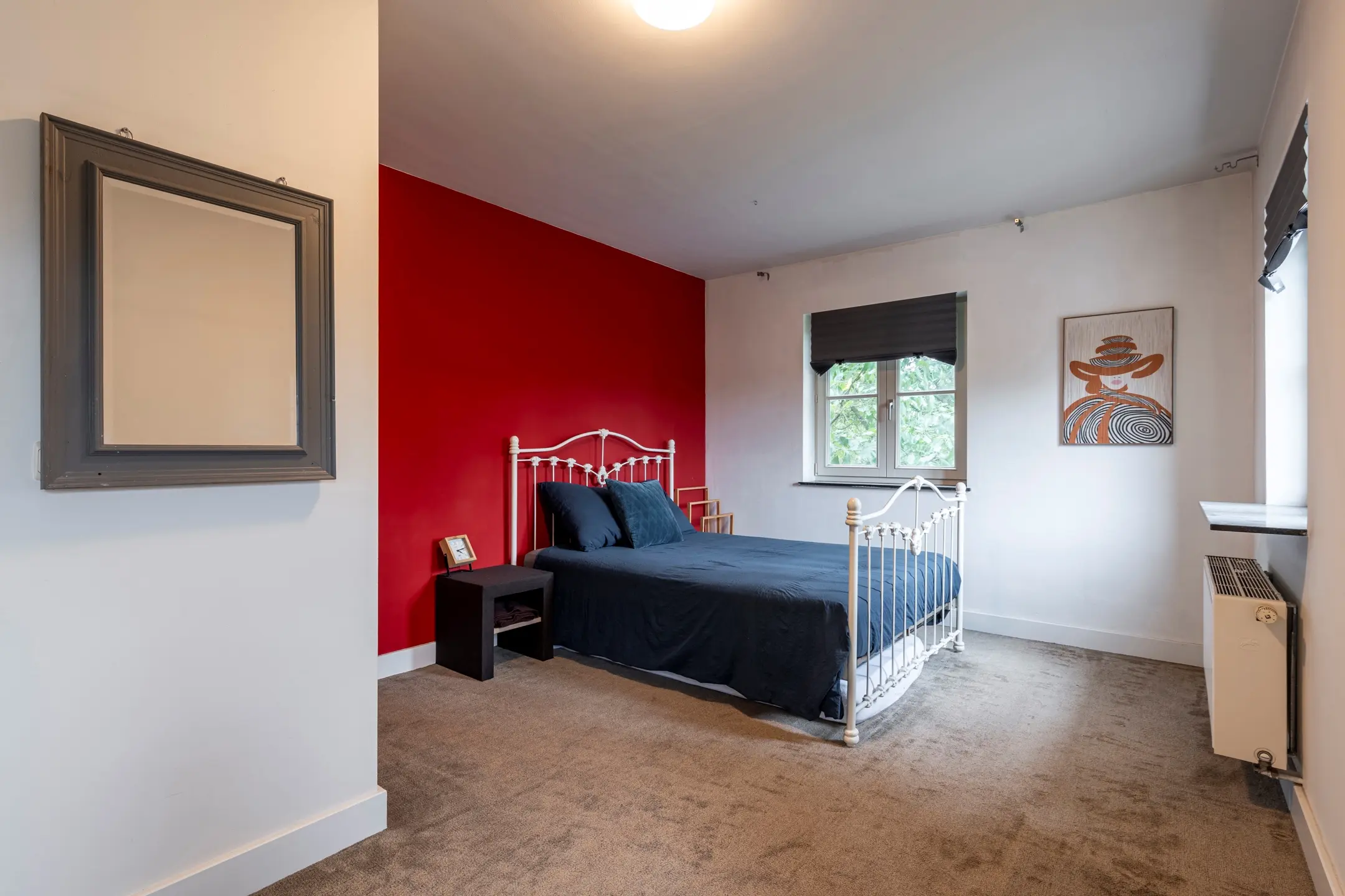 De masterbedroom heeft een eigen dressing, een badkamer voorzien van dubbele wastafel en ligbad/douche combinatie en een ruim balkon met zicht op de tuin.