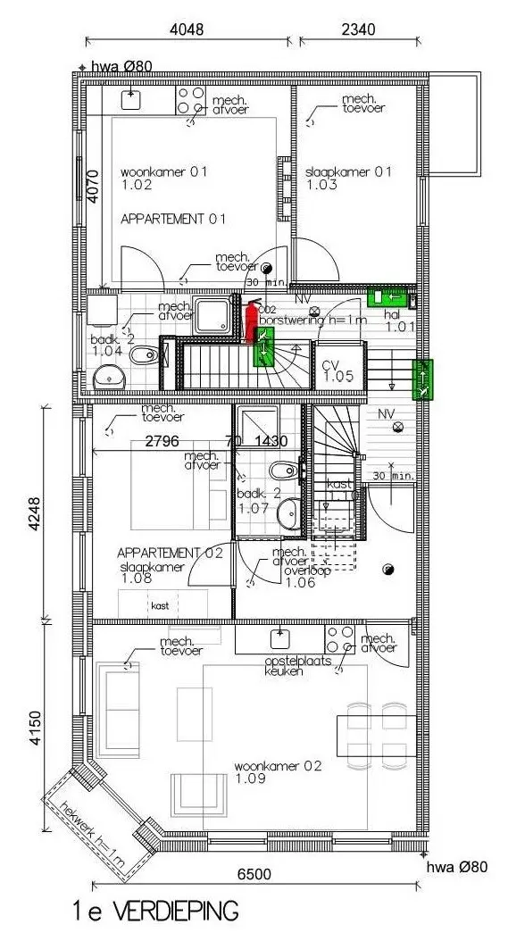 -Appartement eerste verdieping Antoniusstraat nr. 44 met balkon aan voorzijde (ca. 47 m²), energielabel A