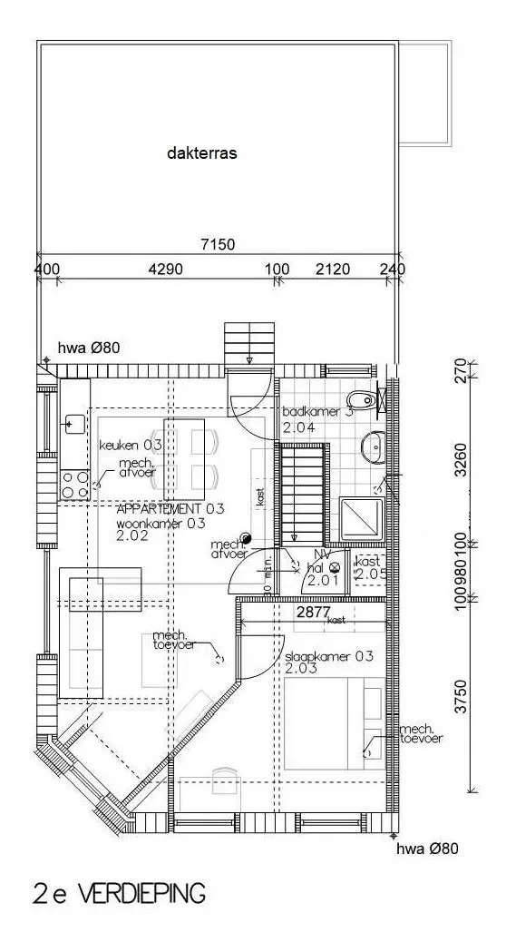 -Appartement tweede verdieping Antoniusstraat nr. 46 met groot dakterras (ca. 57 m²), energielabel C