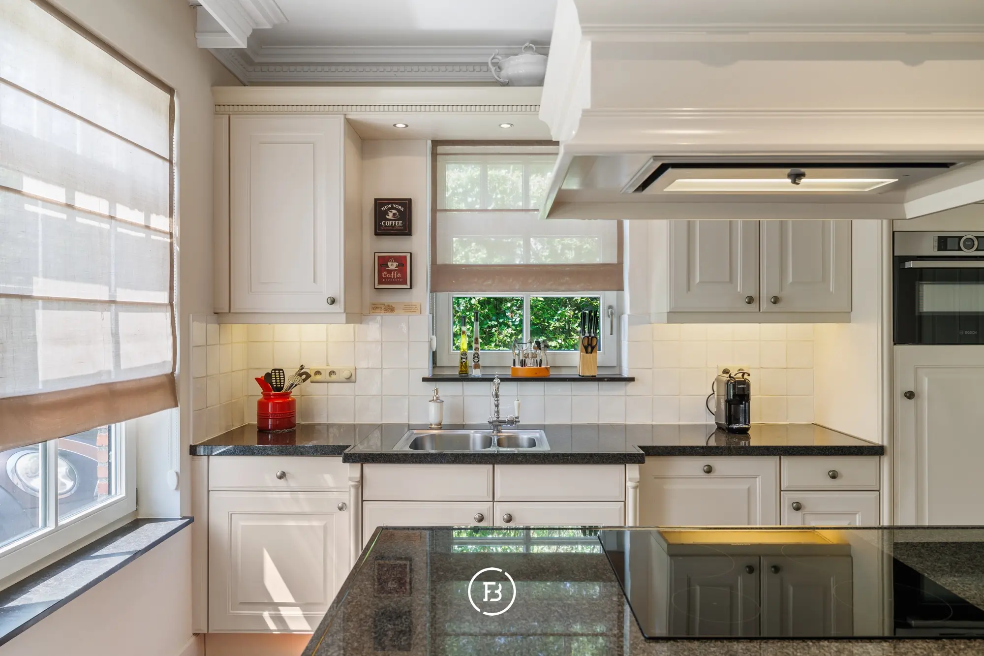 Aansluitend vindt u de keuken met eiland en een praktische berging.
