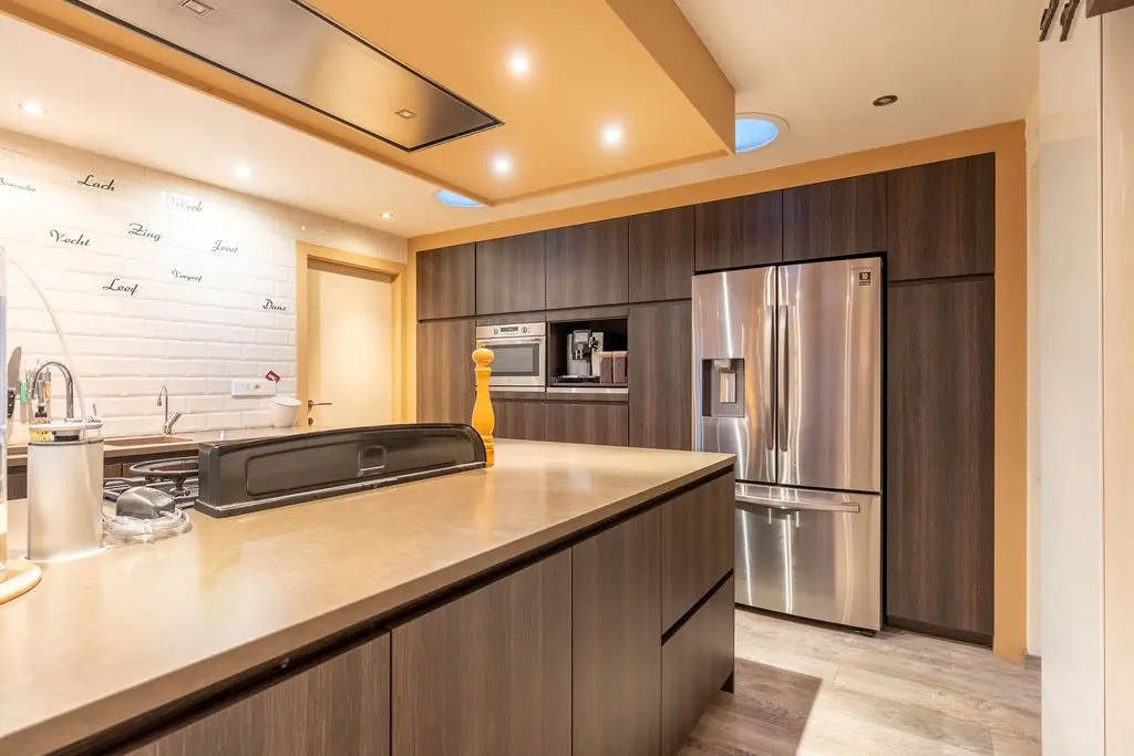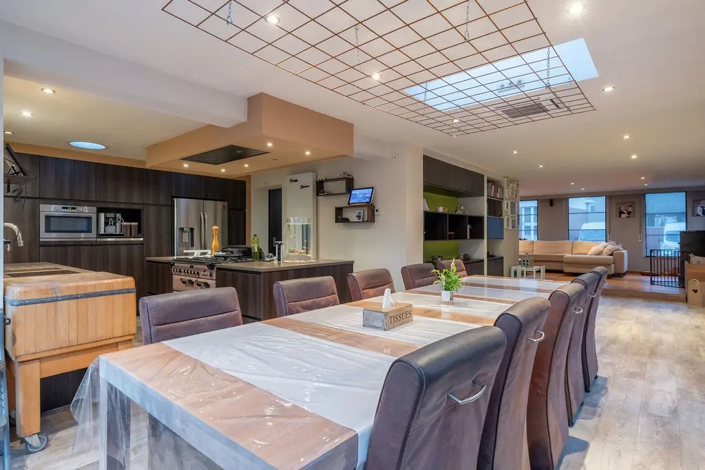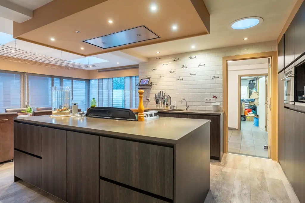 De ruime leefkeuken vormt het middelpunt van de woning en is uitgerust met kwalitatieve toestellen: