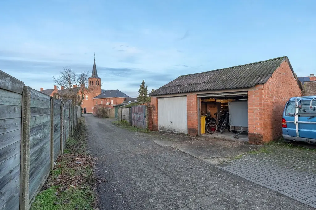 Daarnaast is er een dubbele garage (ca. 45 m²) met twee elektrische poorten en een handmatige poort.