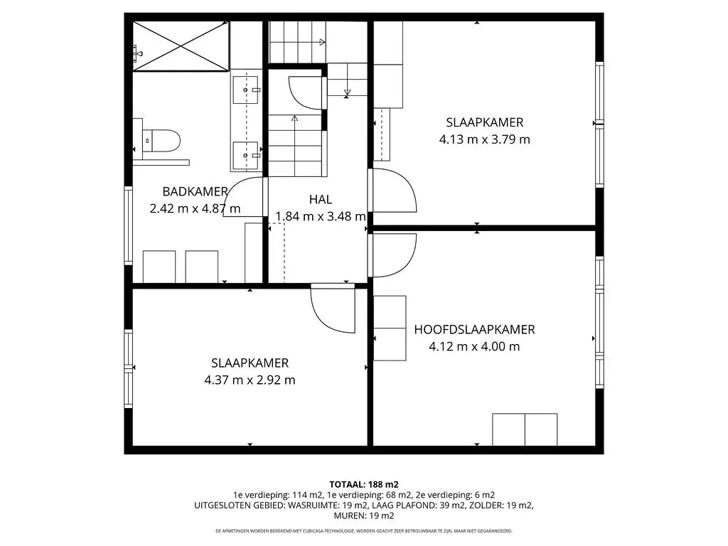 De zolder is deels geïsoleerd en biedt eventueel een vierde slaapkamer.
