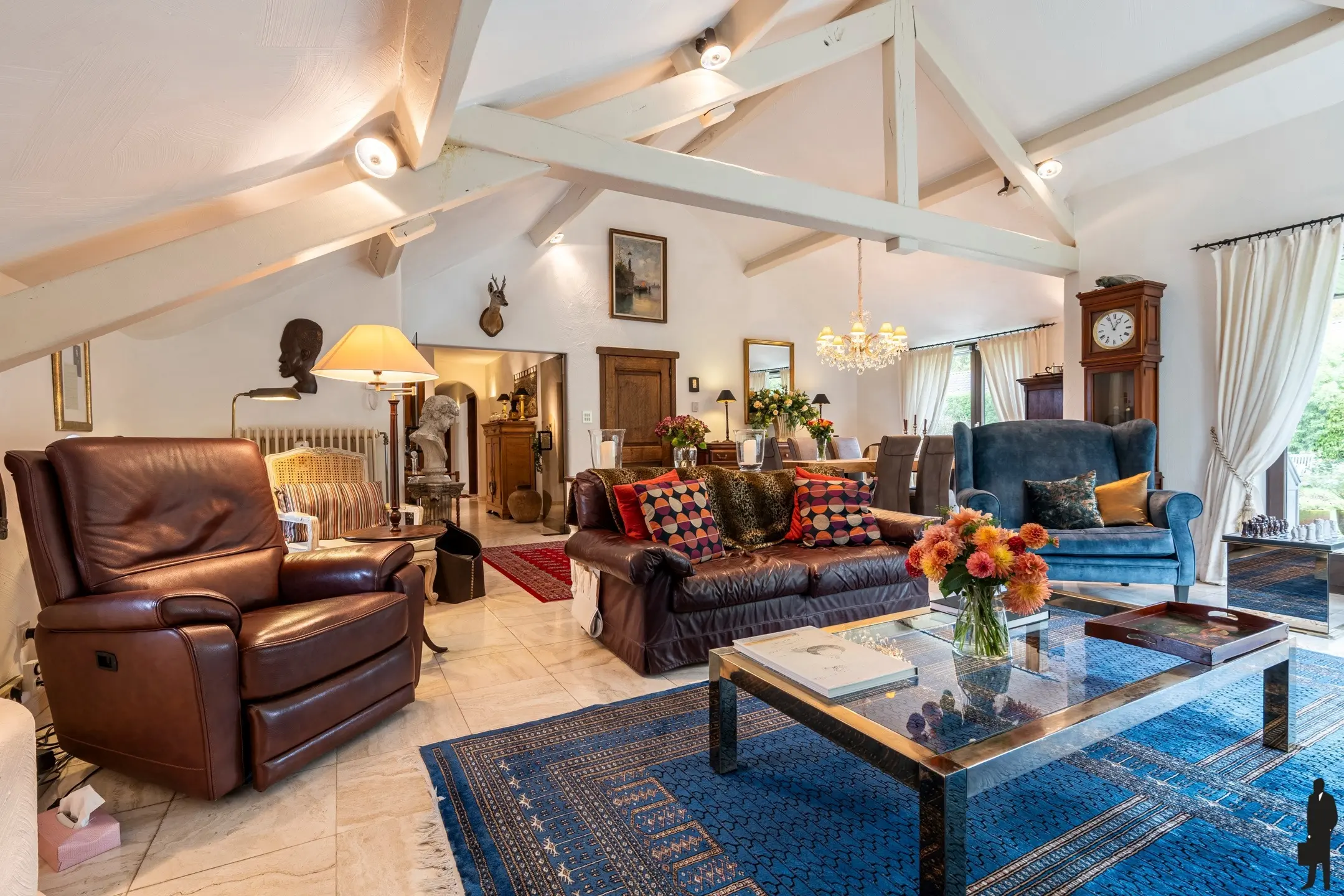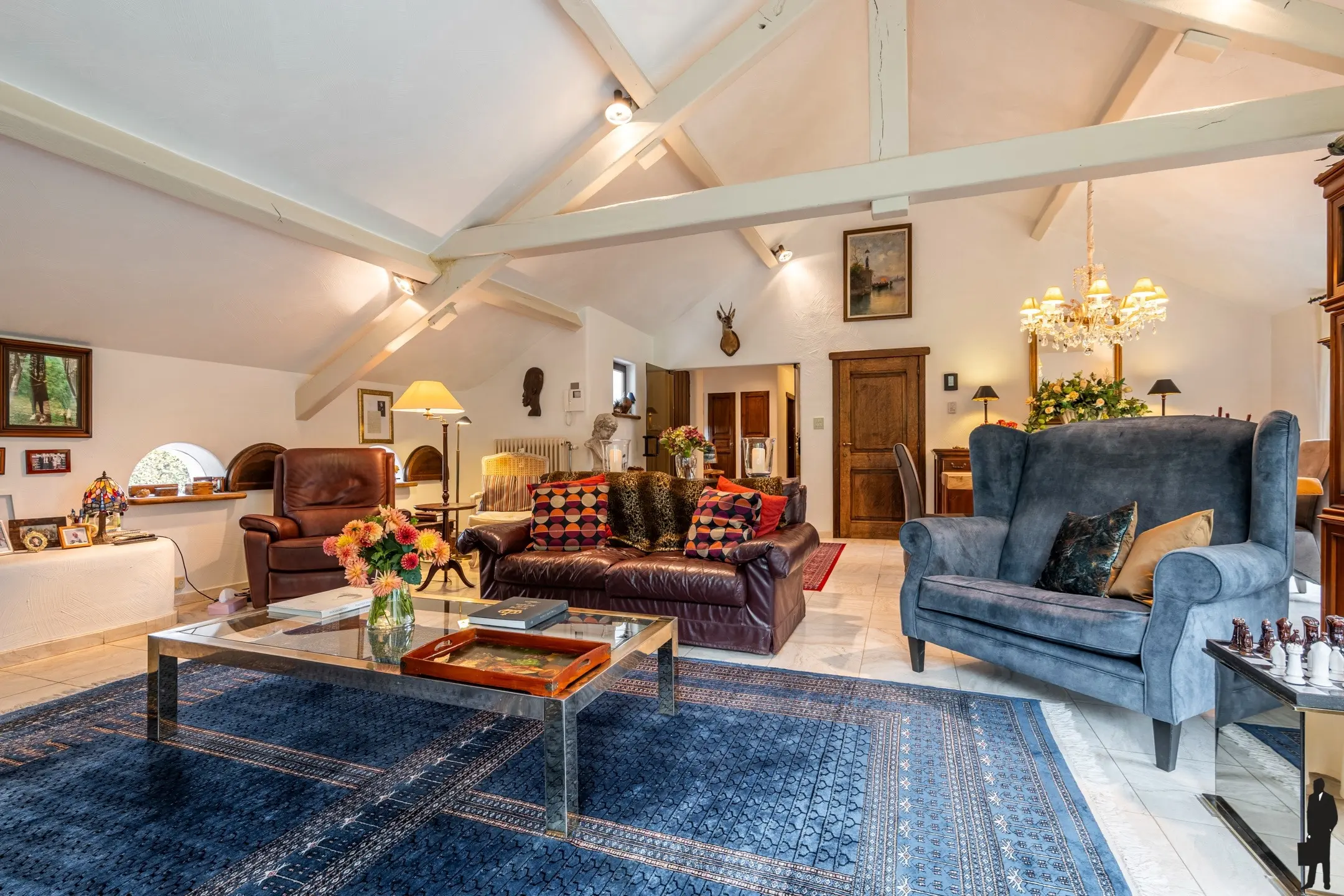 De knusse zithoek is voorzien van een gezellige doch klassevolle open haard die de leefruimte haar sfeervolle uitstraling geeft.