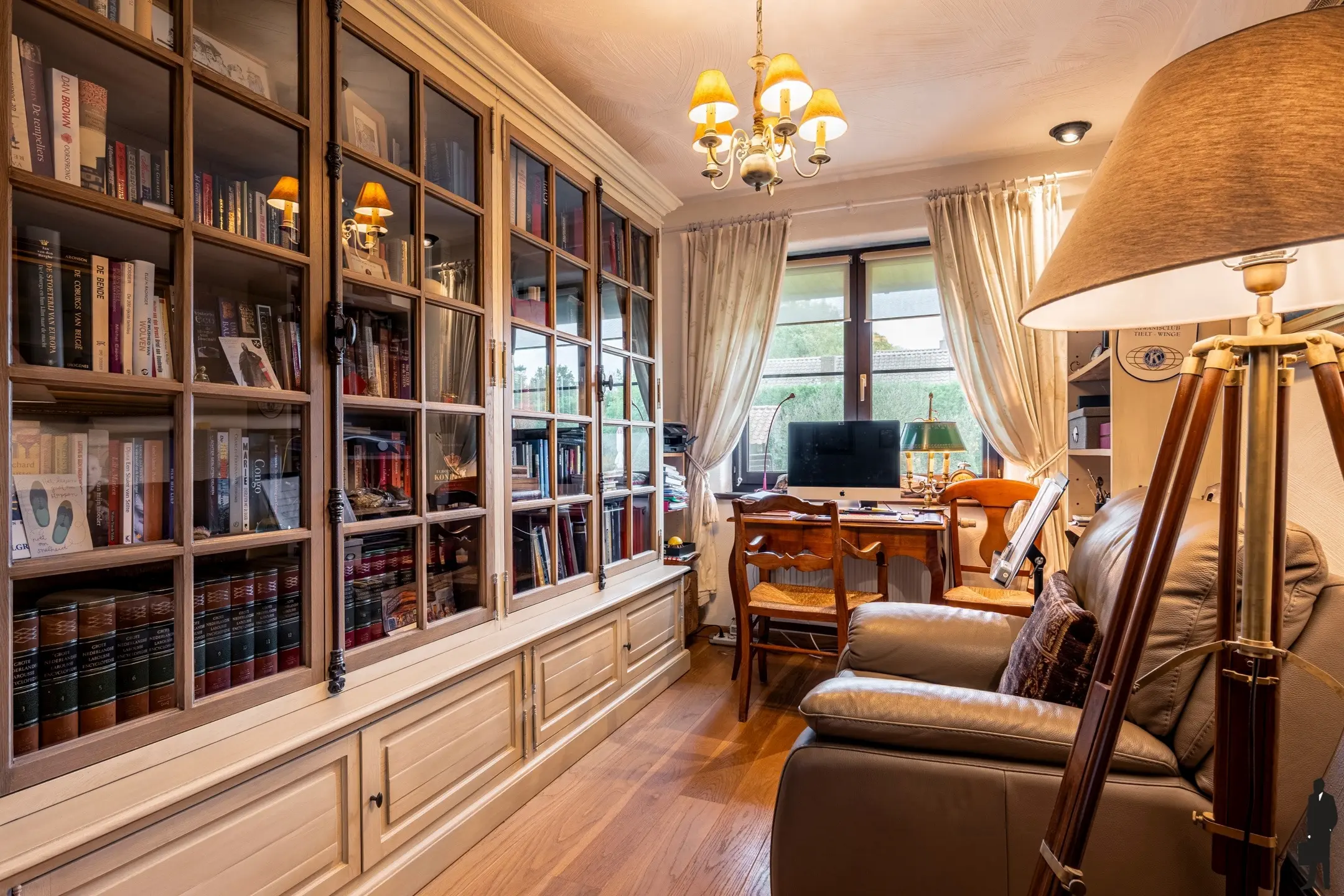 De woning biedt 3 slaapkamers waarvan er momenteel 1 dienst doet als bibliotheek-, bureau en/of studieruimte.