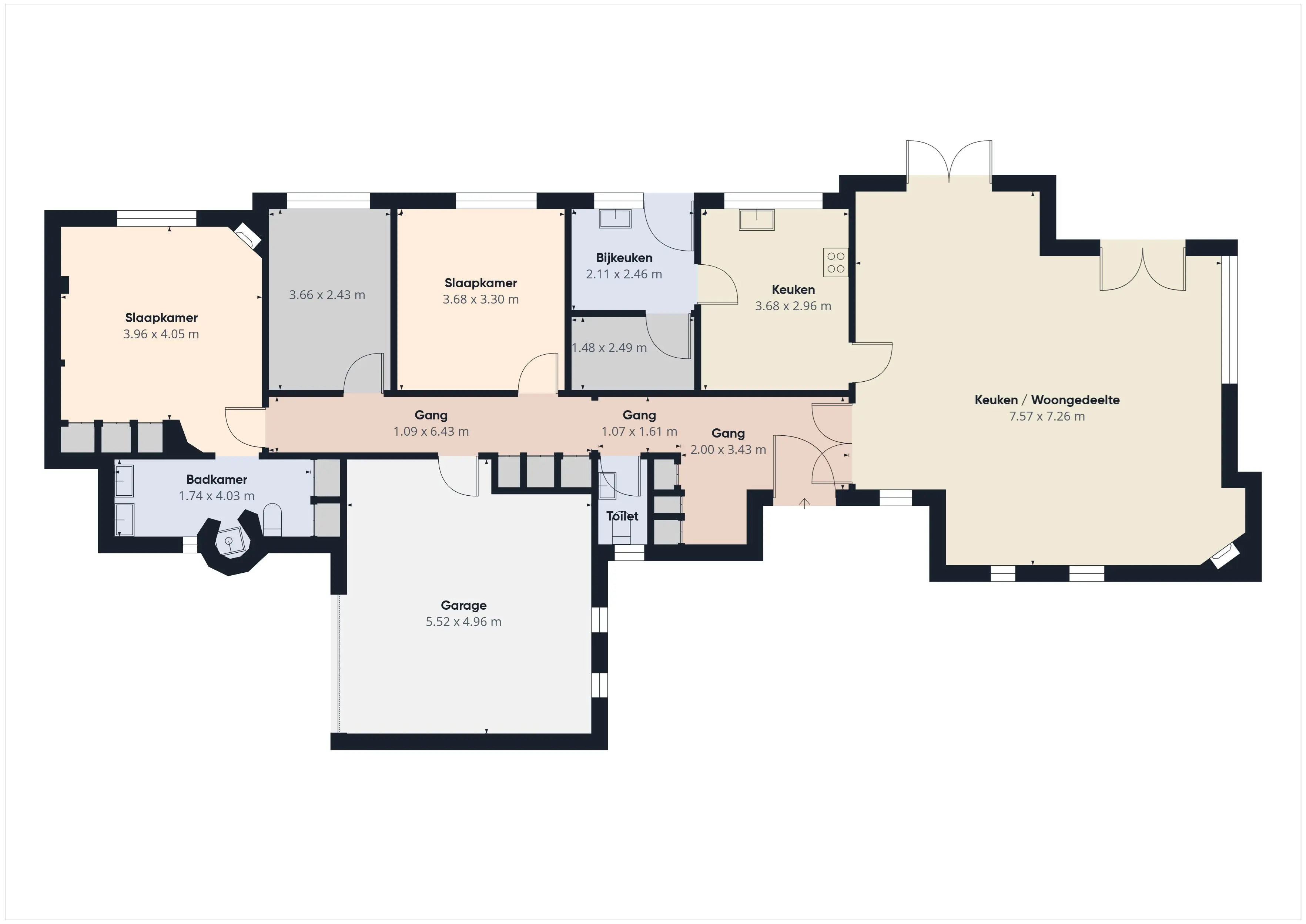 Aan de keuken bevindt zich een bijkeuken die fungeert als tussenhal naar de tuin.